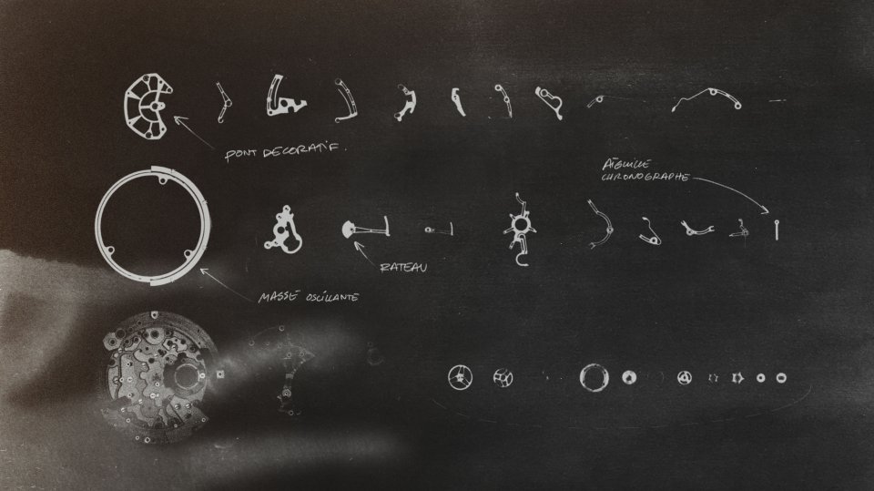社内の技術チームは、ムーブメントおよび短いストロークと少ない力で作動するプッシュボタンのエネルギーを最適化する、新たに特許を取得したムーブメントを開発しました。この革新的な仕組みは、従来のハンマーとハートカムの代替として開発されたラック&ピニオン機構をベースとしています。この機構はラックに動力を蓄えることで歯車列にテンションを保ち、クロノグラフ針の揺れを防ぎます。同時に、従来のクロノグラフに搭載されている、動作時およびリセット時の両方で常にブレーキの役割を果たす摩擦スプリングを取り除くことが可能になりました。結果的にエネルギーの消費量は同等ながら、そのエネルギーは分散されるのではなく蓄積されるようになりました。