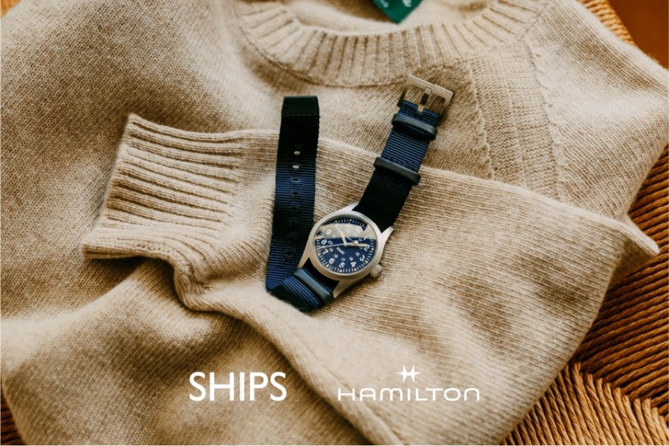 「SHIPS(シップス)」は、アメリカ ペンシルバニア州ランカスター発の人気時計ブランド「HAMILTON(ハミルトン)」とのエクスクルーシブアイテムを発表いたします。1966年、アメリカ軍に納入されたミリタリーウォッチがオリジンの「カーキ フィールド メカ」。ハミルトンを代表するアドベンチャーウォッチとして絶大な人気を誇ります。9月26日(金)より、SHIPS全店(公式オンラインショップを含む)にて販売中。
