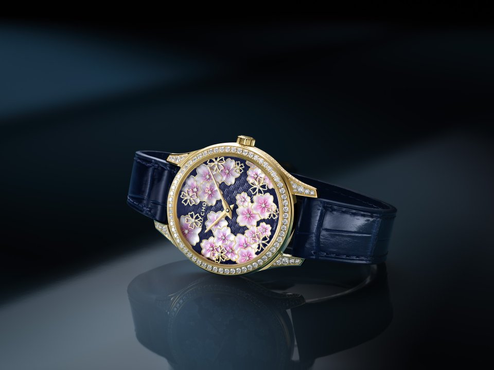 From : Chopard (ショパール )「L.U.C XP サクラ バイ ナイト」ふたつの芸術的工芸の伝統の邂逅から生まれた比類なきクリエイション~ダイヤモンドをセットした18Kエシカルイエローゴールド製、限定8本のレディースエディション