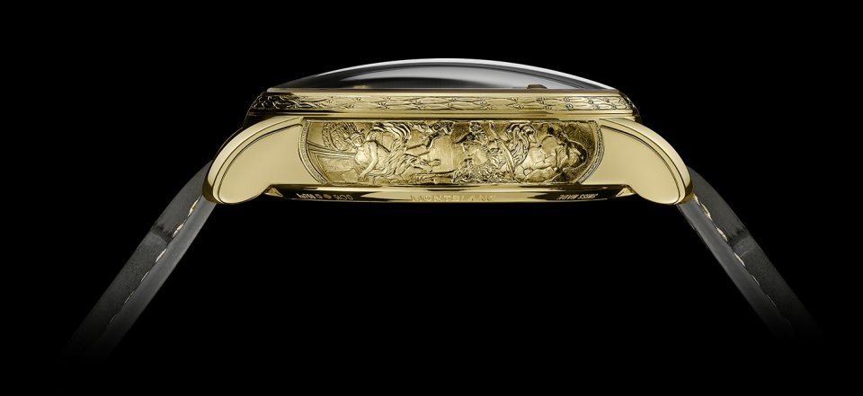 手彫りのソリッドゴールド製ケースが物語を伝える