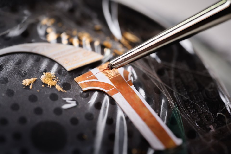 装飾技術には、伝統的なエナメル加工、細密画、そして大理石とオークの象嵌が含まれます。同じように美を放ちながらも伝統にとらわれない高度な3Dモデリングとレーザーエッチングがサファイアと真ちゅうに使用されています。