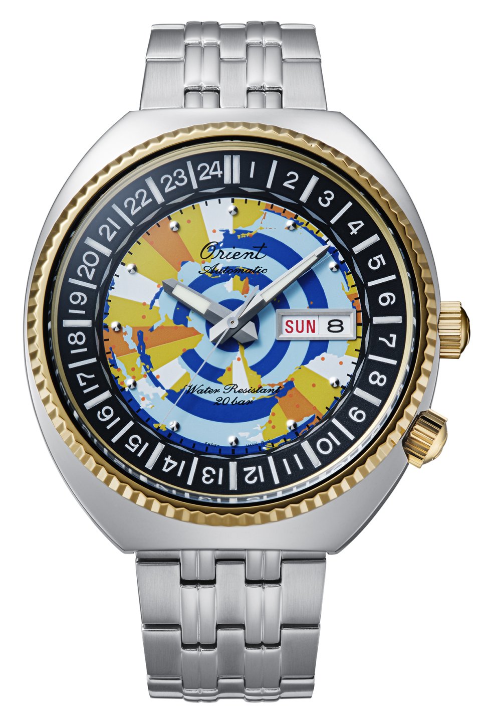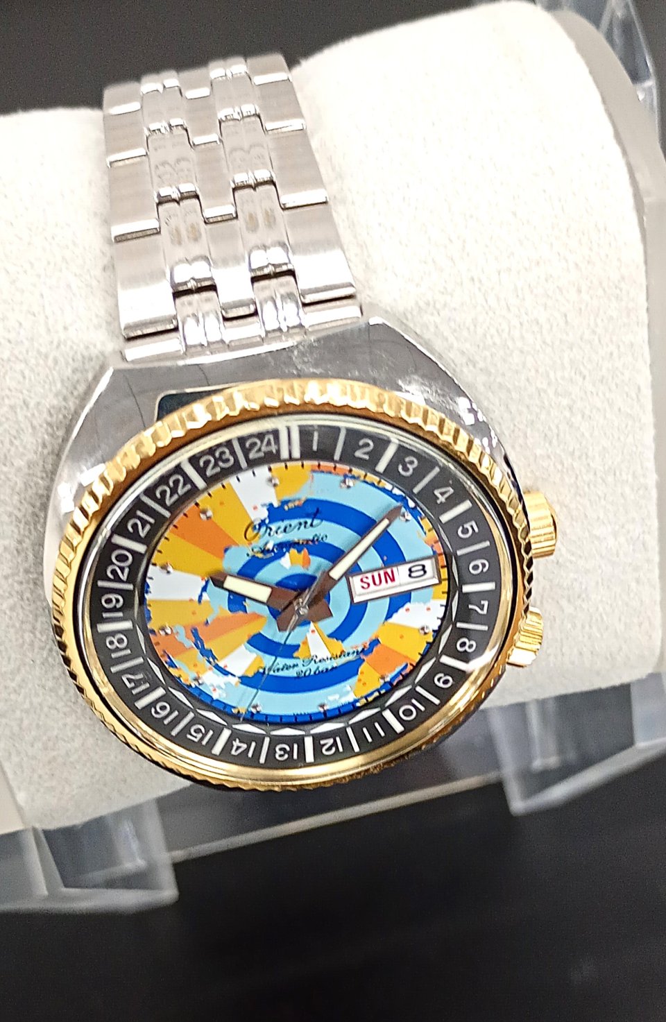 オリエント 75周年を記念して、リバイバルコレクションから『ワールドマップ』第2弾を発売~マルチカラー文字板にゴールド色をあしらった2トーンケースの特別仕様