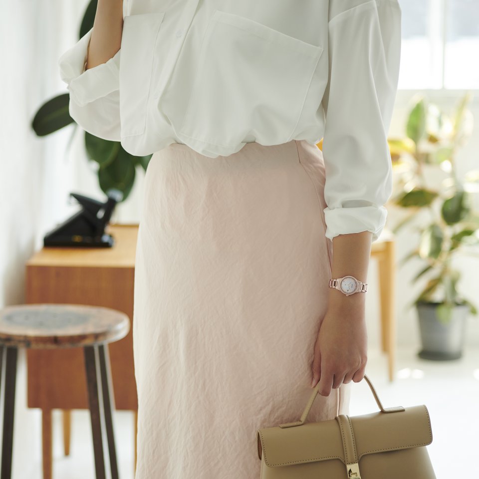 ・ケースとバンドには、肌を明るく、美しくみせるシチズンだけのサクラピンク®を採⽤