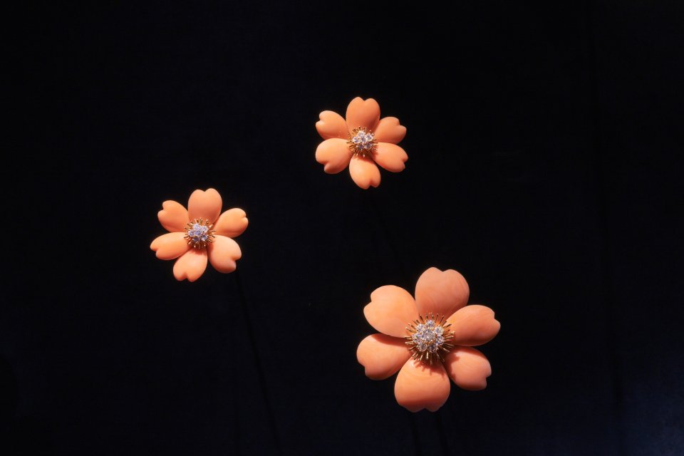 ローズ ド ノエル セット 1970-1971年 イエローゴールド、コーラル、ダイヤモンド ©Van Cleef & Arpels