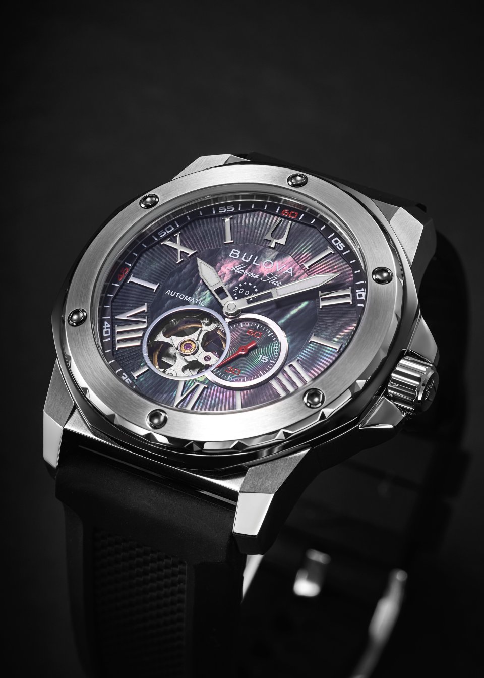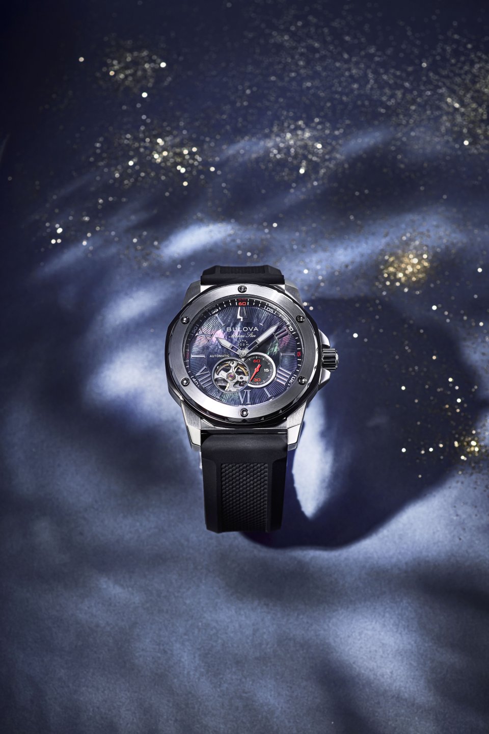 2025 年、アメリカ時計ブランド“BULOVA(ブローバ)”は、創業150 周年を迎えます。この秋冬は、150 周年記念し、日本で人気のマリンスターから待望の日本限定モデルが登場。1970 年代に誕生し、上品なスポーツテイストでファッション性の高いデザインと20 気圧防水の高韴能性をあわせ持つ人気コレクション「マリンスター」から、黒く着色したマザーオブパールを文字盤全面に使用した自動巻きモデルが発売します。