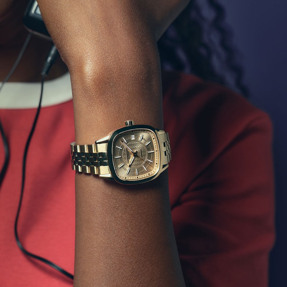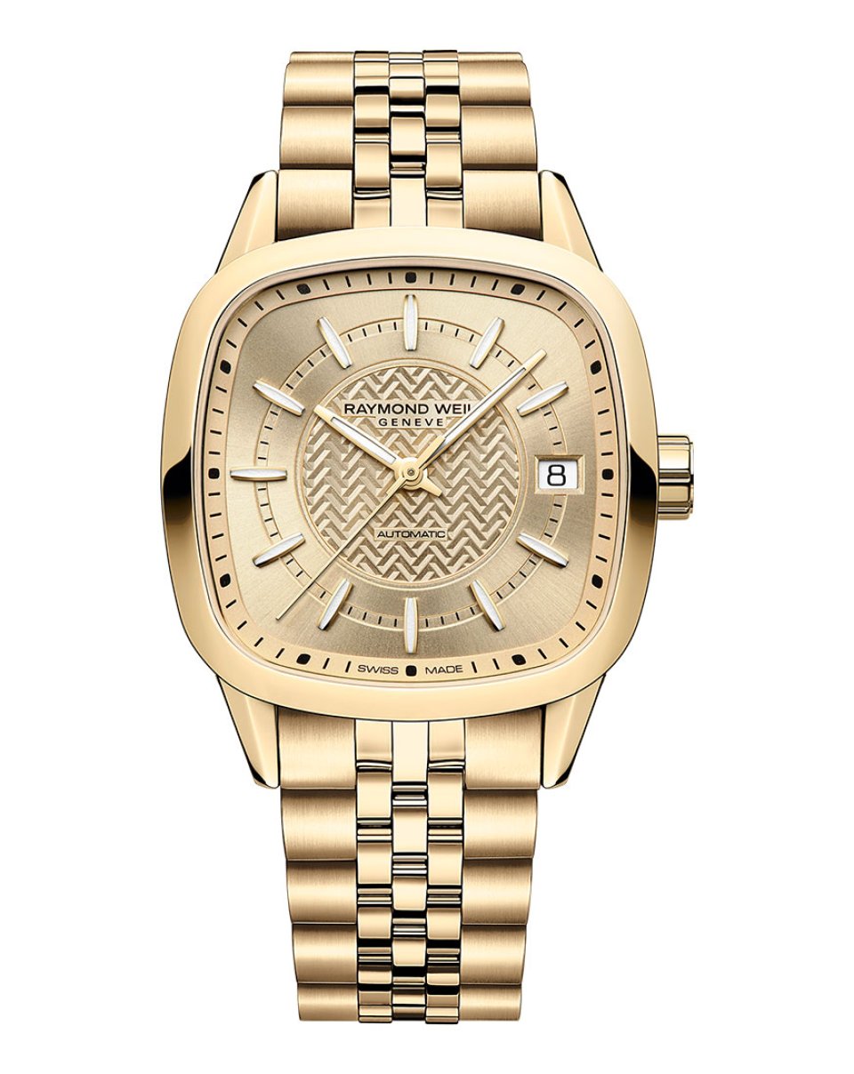 From : Raymond Weil (レイモンド・ウェイル )レイモンド ウェイルがフリーランサー クッションの新作3型を10月31日より発売~ゴールドのクッション型ケースとW(ウェイル)字型のギヨシェダイアルがユニークなタイムピース