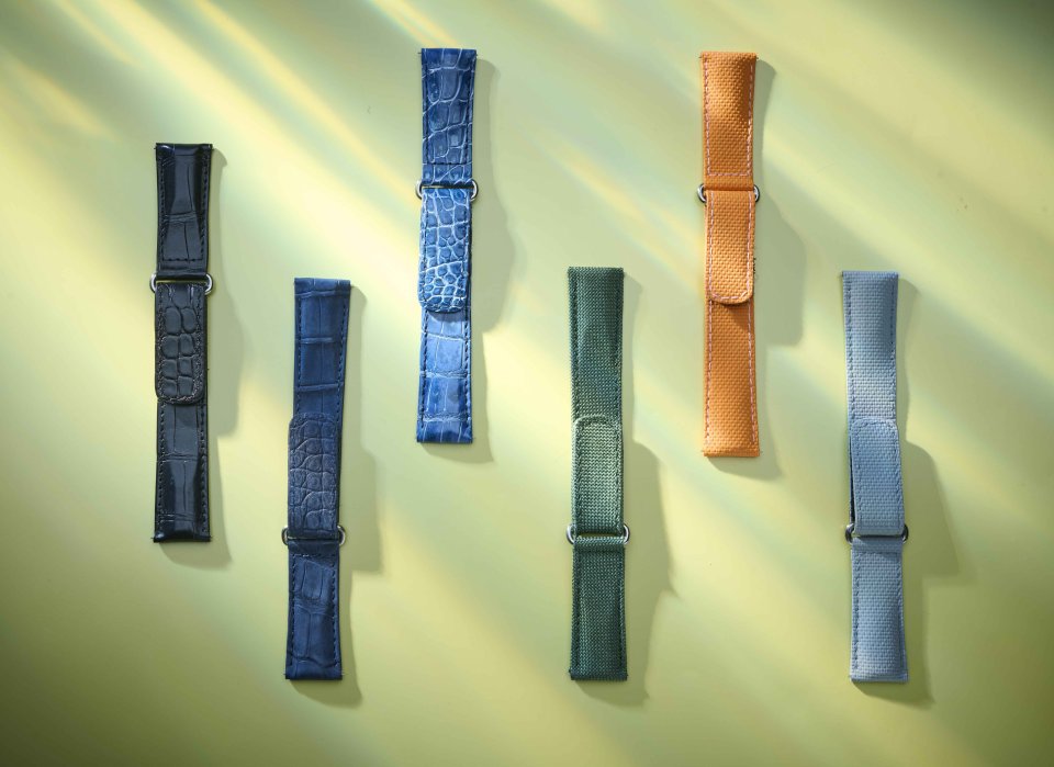 素材のバリエーションには、テクニカルファブリック、ラバー、カーフに加え、革の宝石と称される最高級アリゲーターも用意されています。今回は人気の『ベルクロ』ストラップに上質なアリゲーターを贅沢に使用したモデルに新たに加わった新色をご紹介いたします。