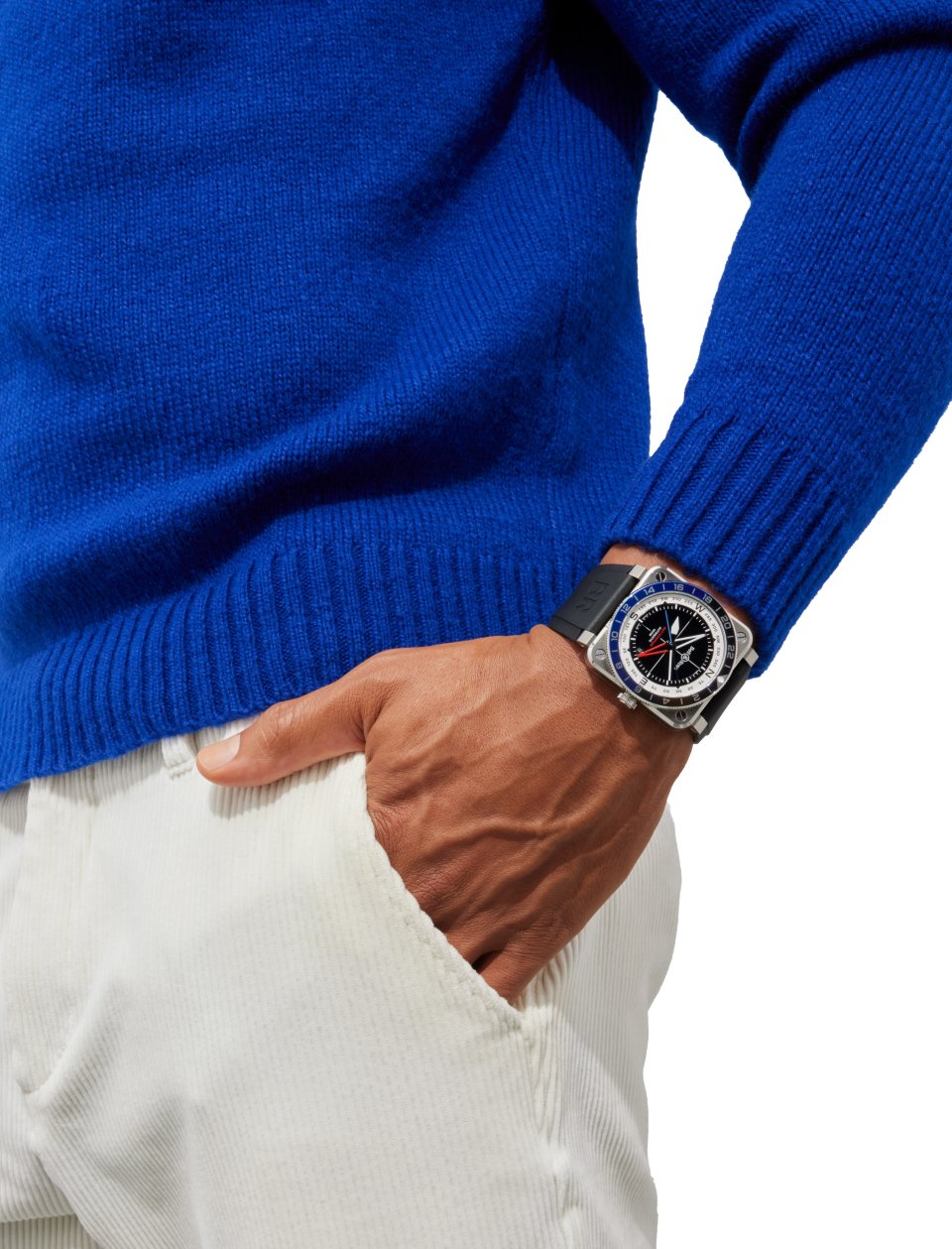 これら3つのフィールドは、ベル&ロスのクリエイティビティの核を成しています。今回の新作BR-03 GMT コンパスは、ナビゲーション計器に着想を得て、ブランドの探求心をさらに深めた一本です。ステンレススティール製ケースに収められ、反射防止加工を施したサファイアクリスタルで保護されたこのインストゥルメントウォッチは、ラバーストラップまたはベルクロ式ストラップでの着用が可能です。BR-03 GMT コンパスは、世界500本限定のユニークなクリエーションです。