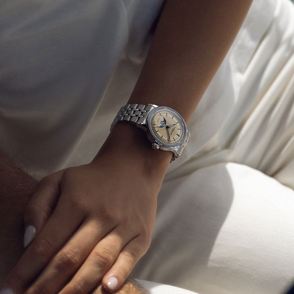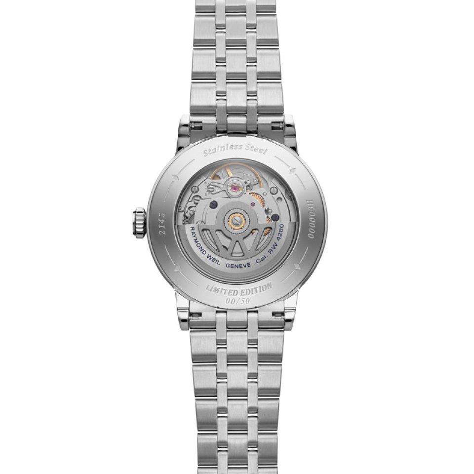 本モデルは、シェルマン銀座 三越店、日本橋 三越店、新宿 伊勢丹本館店、およびレイモンド ウェイル オンラインストアのみでの限定販売。希少性と特別感が、ダイアルの魅力をさらに際立たせています。