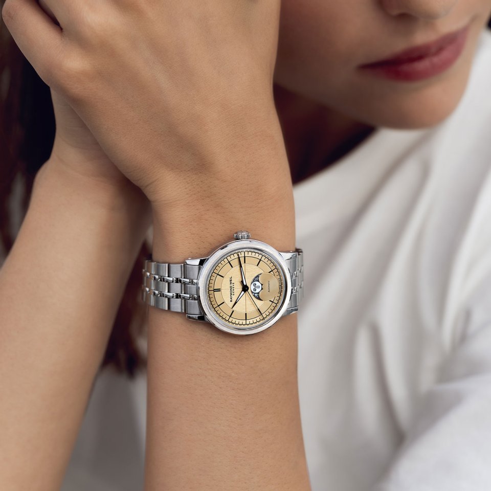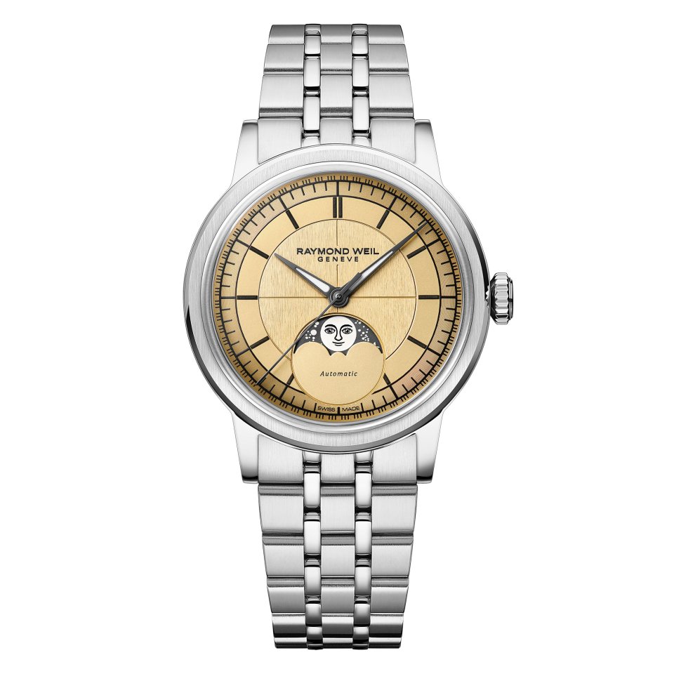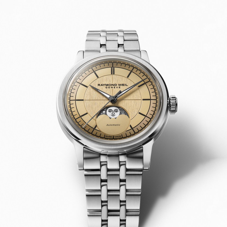 From : Raymond Weil (レイモンド・ウェイル )レイモンド ウェイルがミレジム ムーンフェイズ ハニームーンを発売~光を受けて輝くハニーカラーに幸福を運ぶムーンフェイズを添えた、世界限定50本の特別モデル