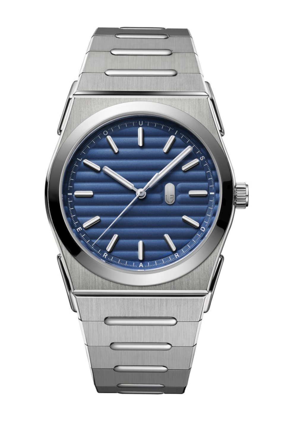 ブラッシュ仕上げのチタンとポリッシュ仕上げのスチールのコントラストが、奥行きと洗練を演出します。各リンクは組み立て後に職人が手作業で面取りし、完璧な仕上げを追求。バタフライクラスプは完全に隠れる仕様で、装着時のラインを途切れさせません。ケースから自然に流れ出すような視覚的連続性と構造的統一感を実現しています。これは偉大なインテグレーテッドデザインへのオマージュであり、Louis Erard 独自の言語で再解釈されたものです。