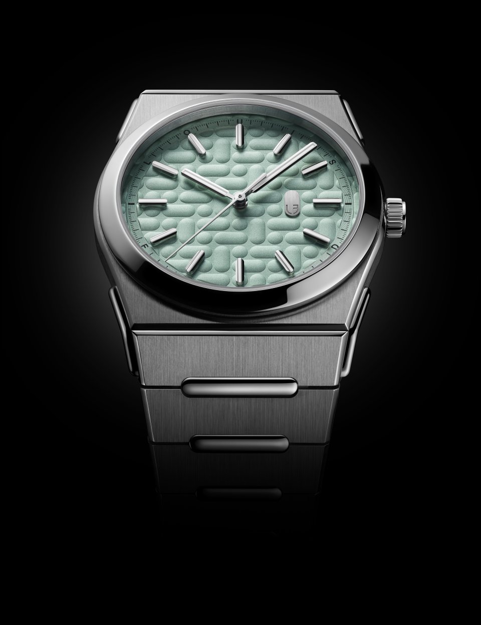 ダイアル: ミントグリーン ラッカー仕上げ - オブロング(ピル)型スタンプパターン