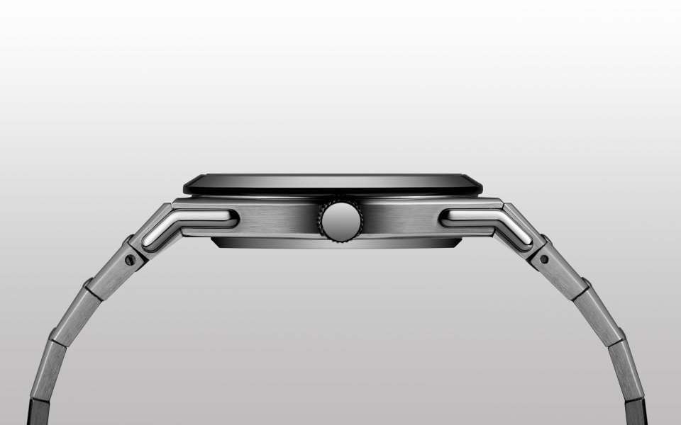 「インテグレーテッド・ブレスレットをデザインする時が来たのです。2 年の開発を経て完成した美しいブレスレットは、チタンとスチールを融合させ、バックル部分に向け緩やかな細みを持たせたテーパード・デザイン。ブラッシュ仕上げとポリッシュ仕上げのコントラスト。そして、組み上げた後に1 コマずつ面取りを施す、完璧で繊細な工程を要します。どのパーツも極めて緻密でありながら、全体は流れるように調和しています。この仕上げレベルは、いわゆる“ハイ・オロロジー”に匹敵しますが、その価格ではありません。時計製造の精通者なら、その違いを“感じる”はずです。これはデザインを超えた、エンジニアリングそのもの。精緻なケースと深みあるダイヤル。