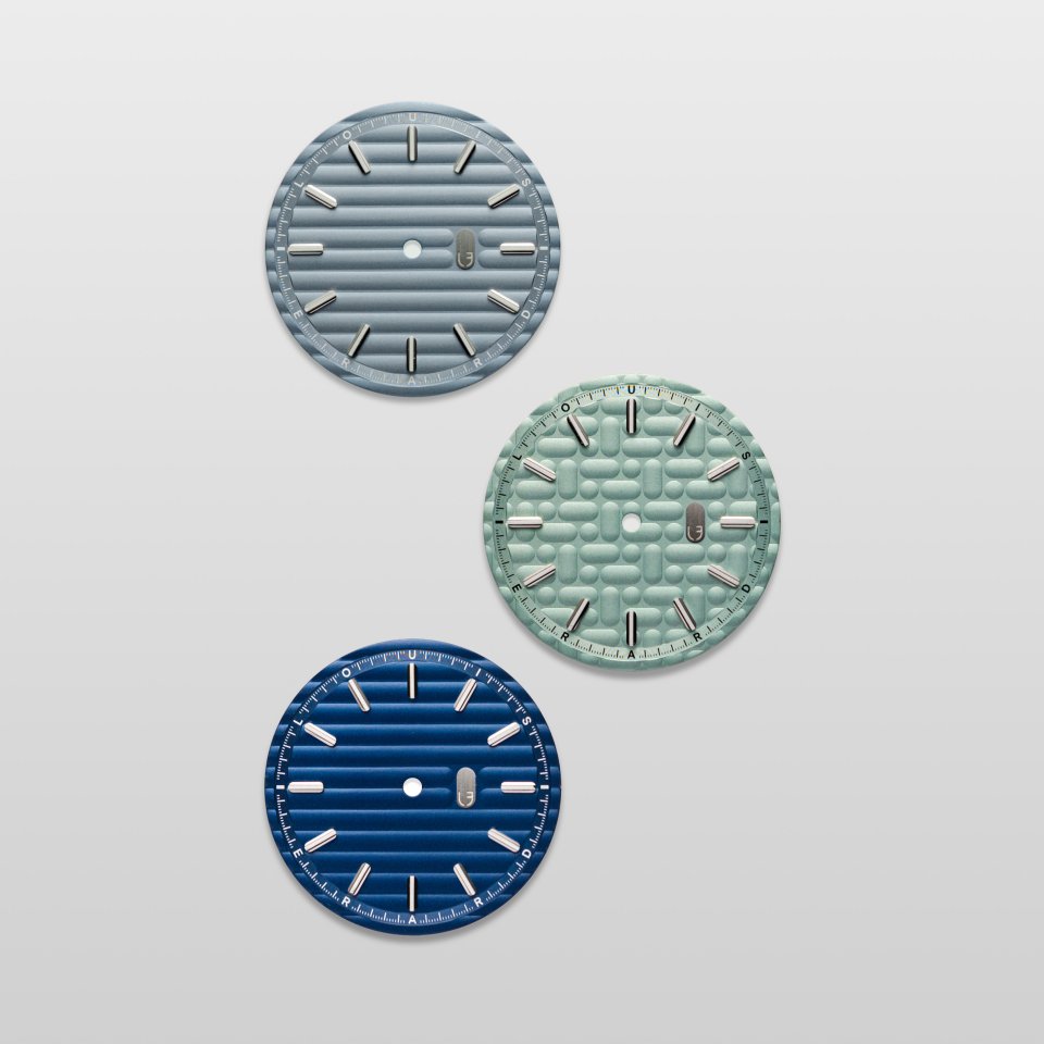 ダイアル: スレートブルー ラッカー仕上げ ‒ ホリゾンタル ウェーブパターン