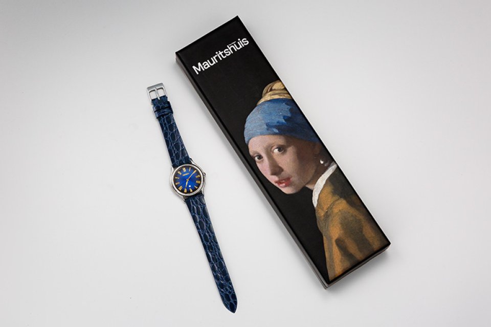 そこで、日本が世界に誇る腕時計メーカー〈セイコー〉と企画を開始し、「デルフトの眺望」と「真珠の耳飾りの少女」の2大傑作をオマージュした、男女兼用の腕時計が完成しました。