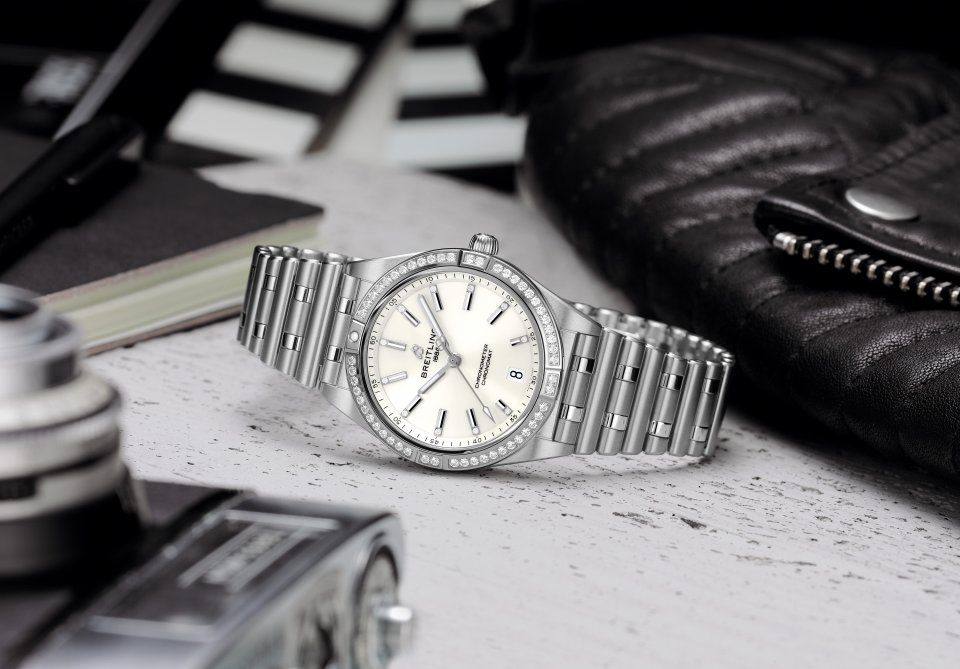アイコニックなルーローブレスレットの着け心地は抜群。クロノマットオートマチック 36は、COSC認定のクロノメーターのブライトリングキャリバー10を搭載しています。