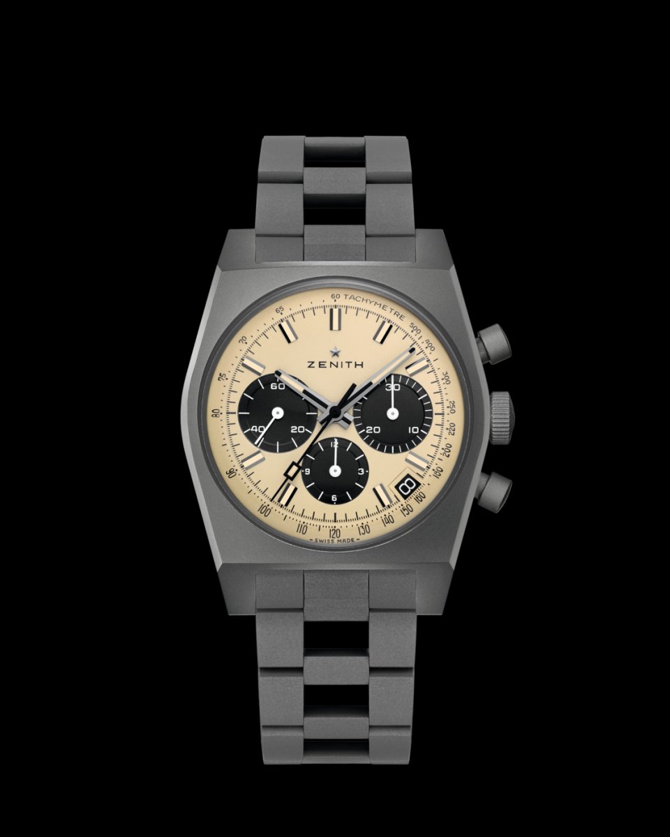 [特長]:自動巻エル・プリメロ クロノグラフ。ベージュカラー文字盤、ブラックカウンター。4時半位置に日付表示。200本限定モデル。