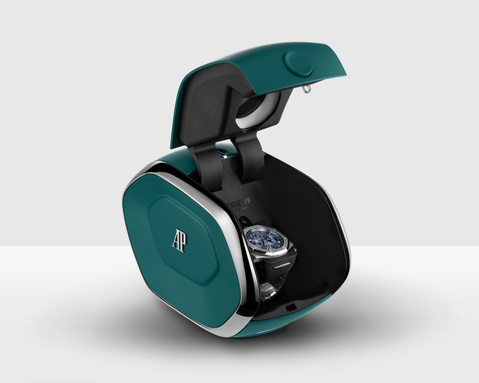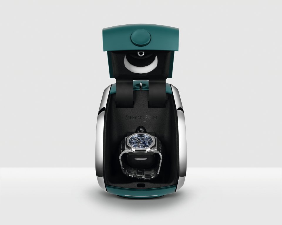 マニュファクチュールの 41mm パーペチュアルカレンダーウォッチの調整をシンプルにするウォッチボックス。オーデマ ピゲとドバイ未来財団は時計製作のイノベーションに新たなページを開いた。© Courtesy of Audemars Piguet