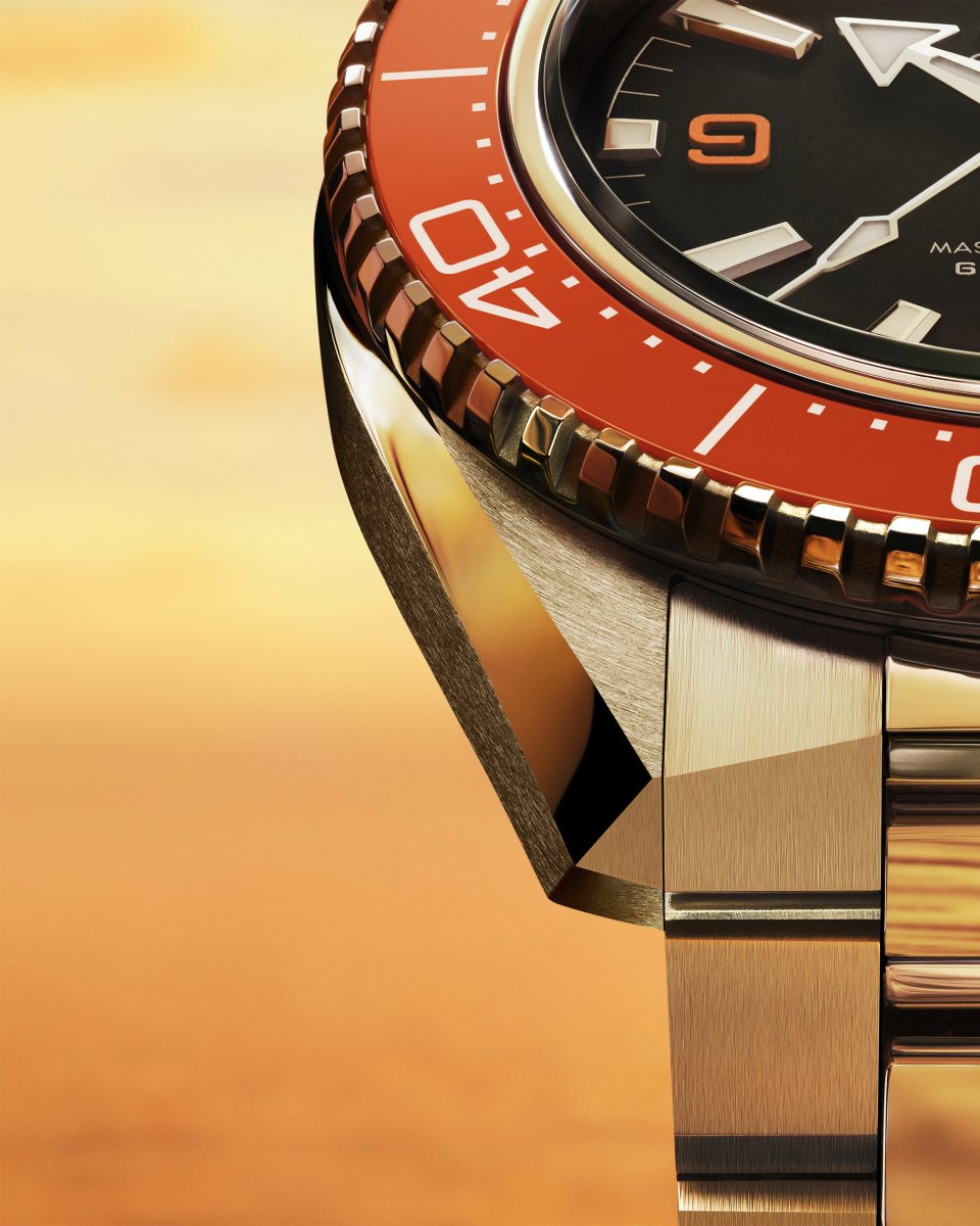 オメガは特にこのコレクションのために、セラミック加工技術の完成度を高めるために時間を費やし、最終的にいくつかのモデルのベゼルに、鮮やかなオレンジの新色を施すことに成功しました。