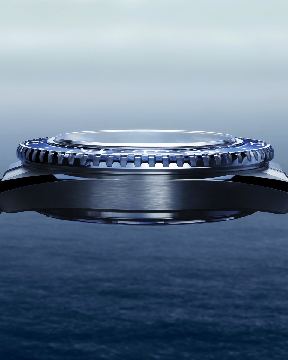 メインボディと内側のチタンリングからなる2パーツ構造で、全体のラインはよりシャープに、エッジはより明確に表現されています。また、新しいデザインに合わせて、20年間コレクションの特徴だったヘリウムエスケープバルブが廃止されました。