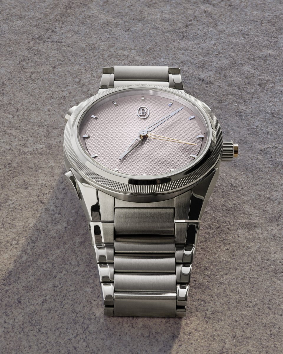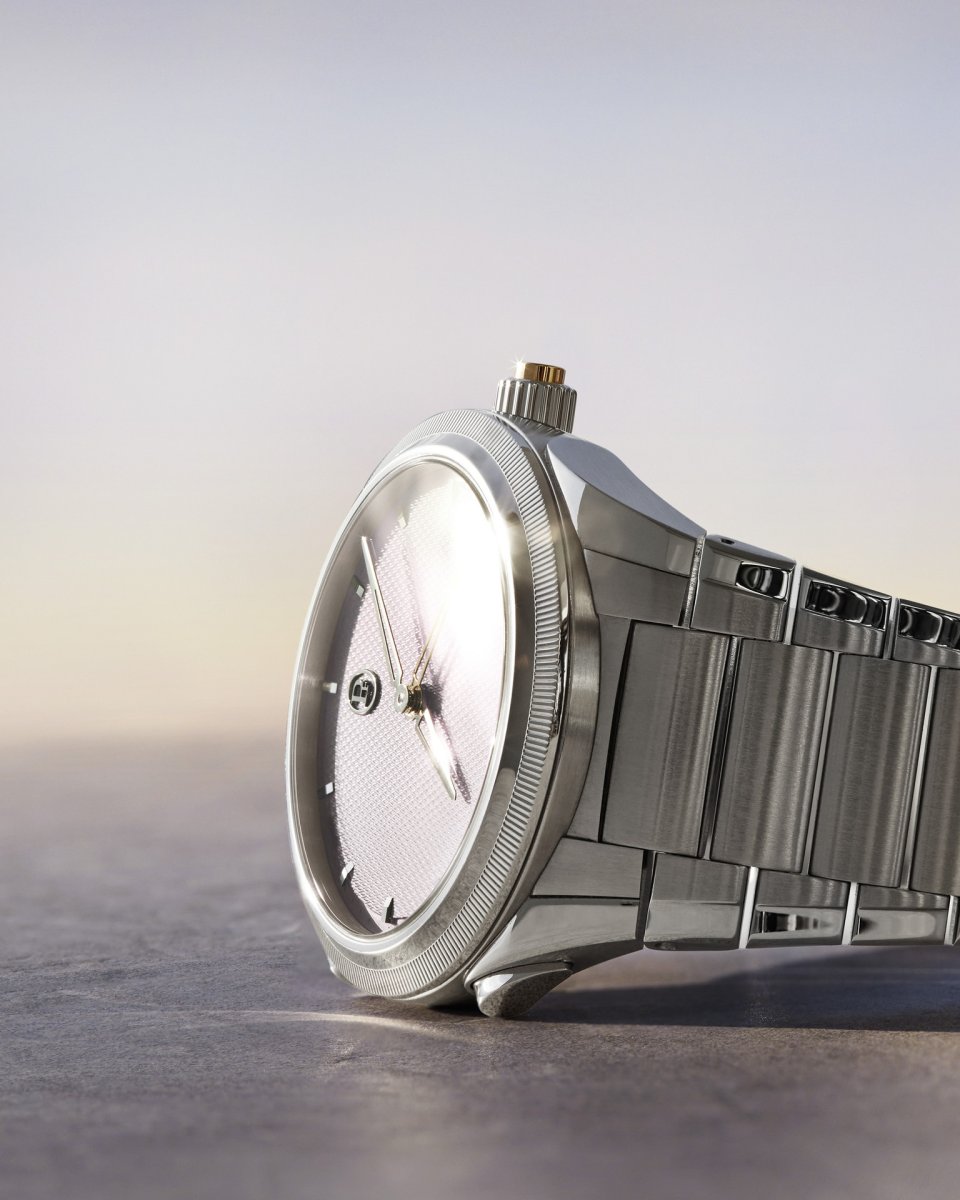 アークティック・ローズという色の選択にも、深い意味が込められています。18世紀、ローズカラーは男性が身に着ける色であり、洗練と品格の象徴でした。この色が女性らしさと結び付けられるようになったのは、20世紀後半のことです。この色を現代の男性的なウォッチメイキングに再導入することは、忘れられた伝統との絆を新たにして、既成概念から解放された美学を肯定することでもあります。