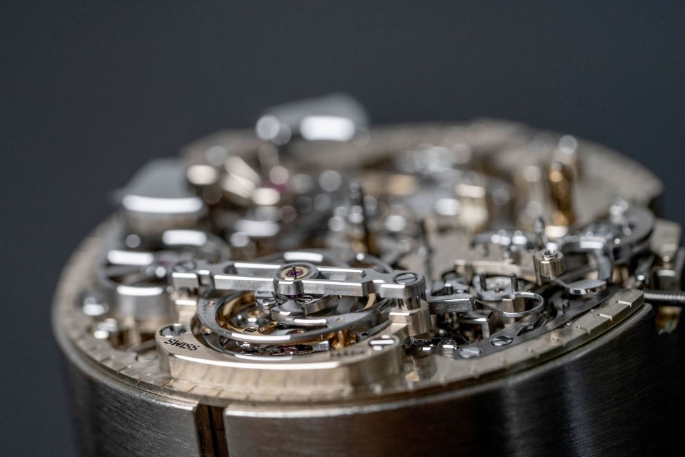 残る3件の新しい特許は、いずれもパフォーマンスの最適化に特化したものです。まず1件目は、ソヌリチャイムの起動に必要なトルクを低減するエネルギー効率の高い新しいクラッチ機構の開発で、これによりソヌリ香箱のパワーリザーブを効果的に延長することができます。2件目は、トルクが不足している場合、ソヌリチャイムの起動をブロックする機構に関するもので、これによりチャイムの途中停止や不完全な打鐘を回避できます。3件目については、ハンマーの形状を再定義し、慣性モーメントを変化させることで、偶発的な衝撃が発生した場合に、サファイアクリスタルゴングへのダメージを最小限に抑える設計です。この追加の安全性をチャイム音の品質を損なうことなく実現するために、特別な努力が払われました。