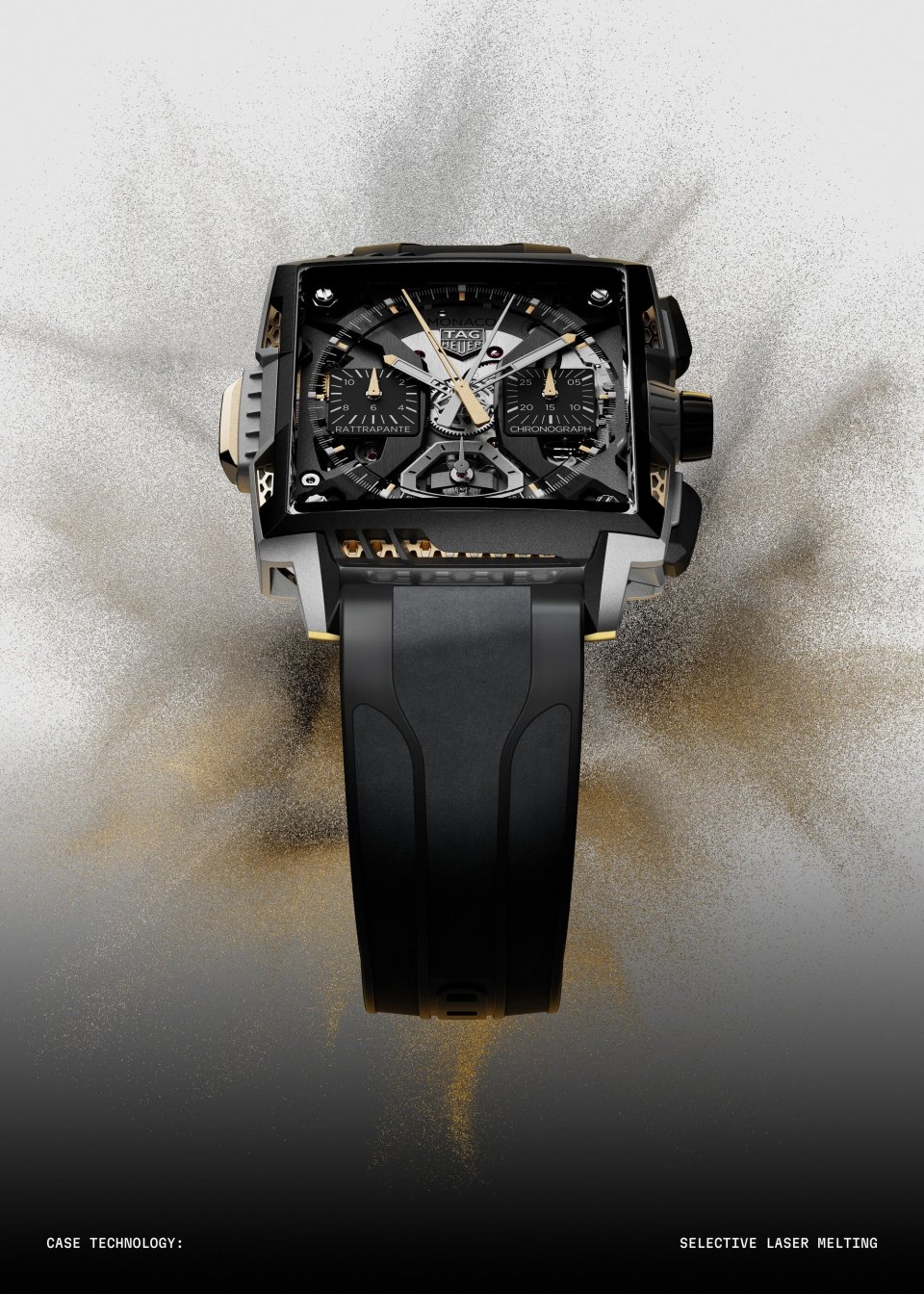 選択的レーザー溶融(SLM)を採用することで、タグ・ホイヤーはこの従来の関係を逆転させ、テクノロジーがデザインを支える新たなアプローチを確立しました。これによって、クリエイティブなプロセスに制約がなくなり、タグ・ホイヤーのデザイナーたちはこれまで実現不可能だったデザインを自由に構想できるようになりました。「タグ・ホイヤーモナコスプリットセコンドクロノグラフエア 1」において、「限界は存在しない」という明確な設計思想が実現し、パラダイムシフトが起こったのです。