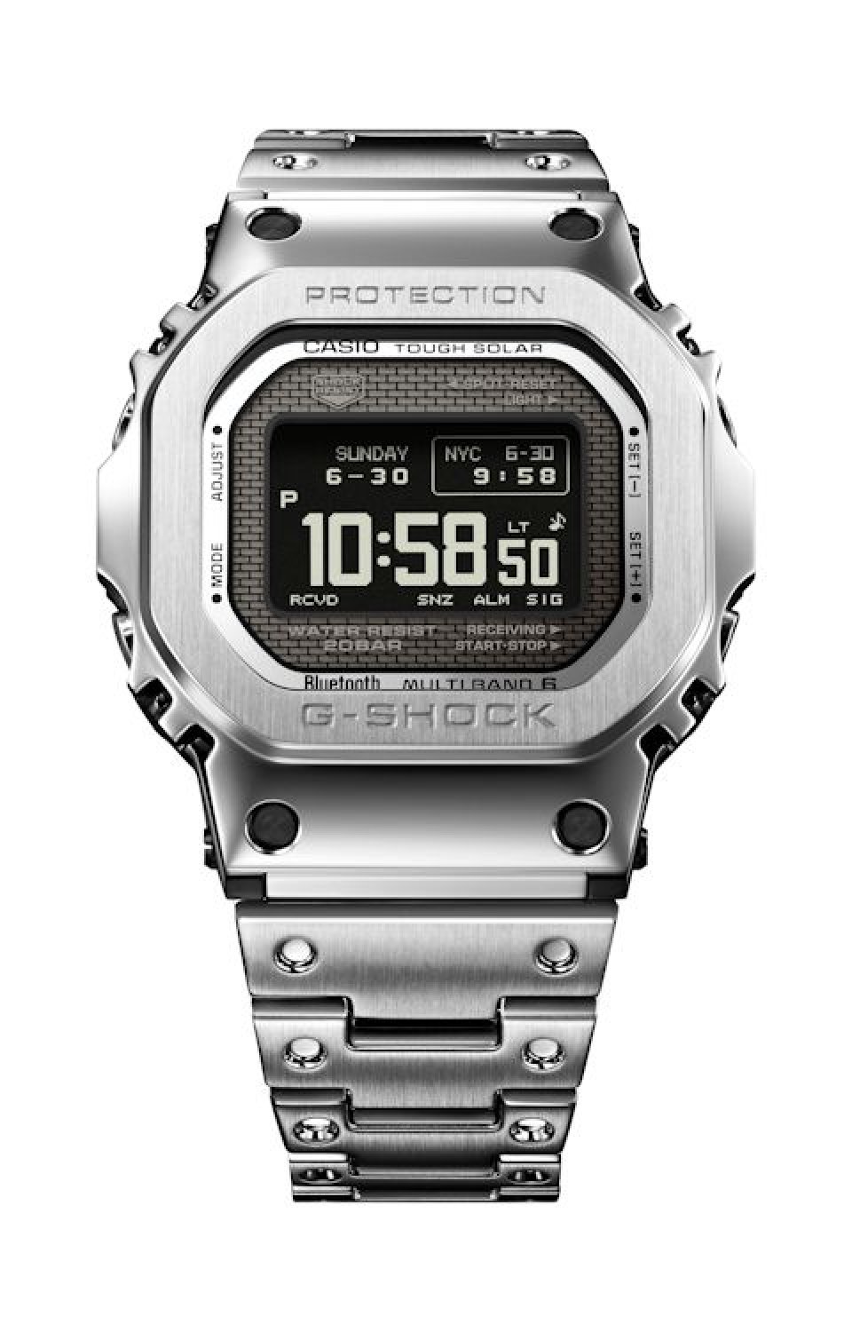 今回の『GMW-BZ5000』は、“G-SHOCK”のフルメタルモデルとして初めて、直射日光下や斜めの角度からでも表示が見やすいMIP液晶を搭載した耐衝撃ウオッチです。