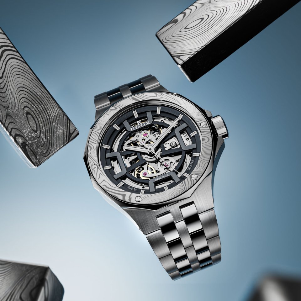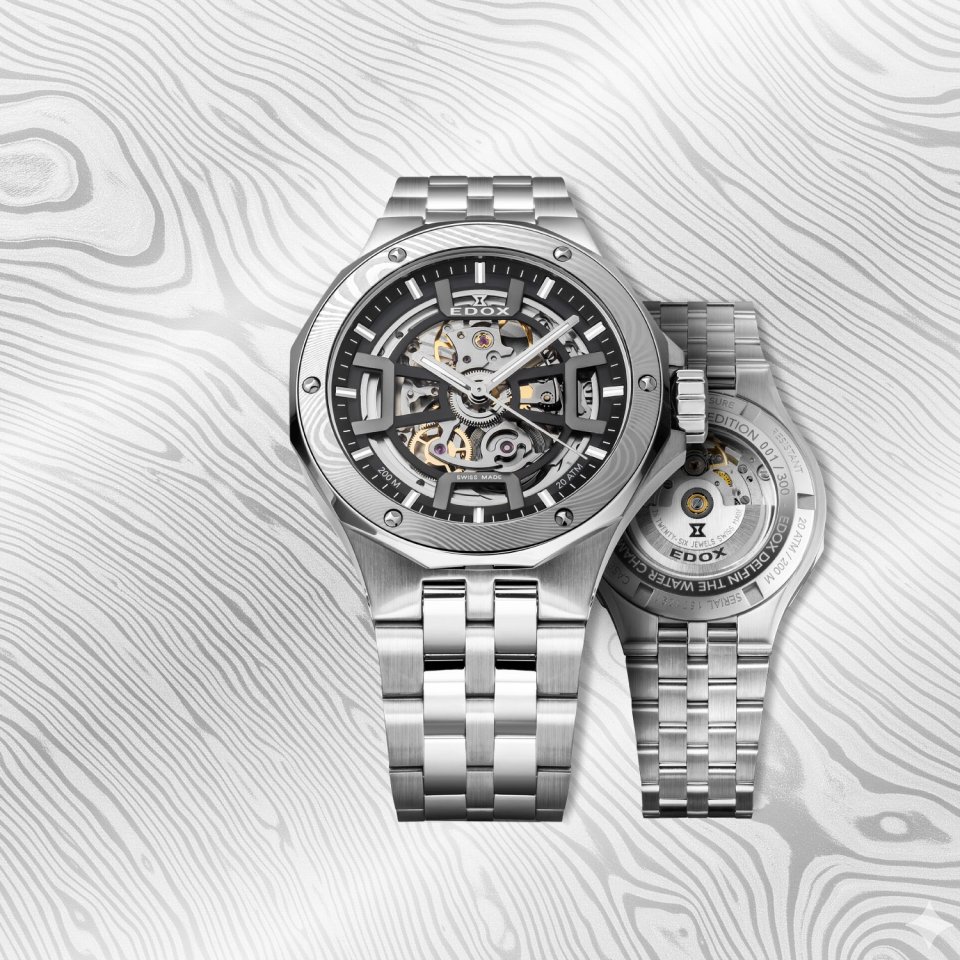 From : EDOX (エドックス )“THE WATER CHAMPION”の起源を受け継ぐ歴史的コレクションが新たな次元へ~ダマスカス鋼ベゼルが海の鼓動を映す「デルフィン オリジナル メカノ」の世界300本限定モデルを11月25日に発売