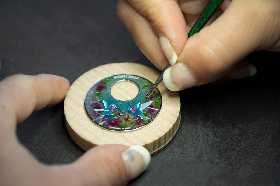 From : JAQUET DROZ (ジャケ・ドロー )トゥールビヨン レッドゴールド - ハミングバード(Petite Heure Minute Red Gold – Hummingbird)を製作~高級時計製造におけるフローラル アートのルネサンス