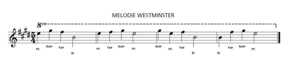「時」を奏でる二つのメロディ。4つの音階〈ミ・ソ・ファ・シ〉。4本のハンマーとゴング。