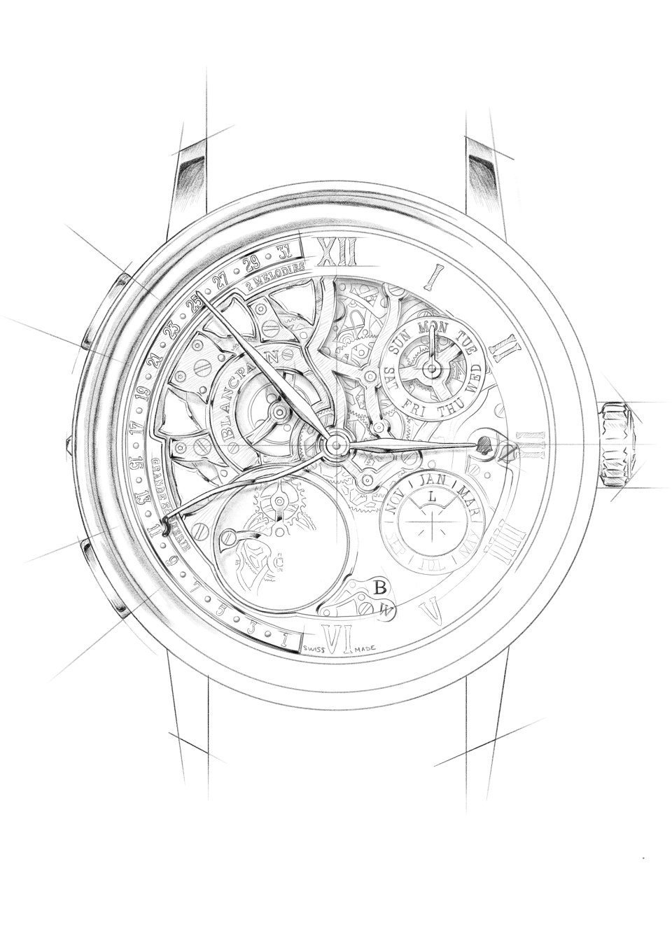 8年前、ブランパン社長兼CEOのマーク A. ハイエックが、このグランドコンプリケーションプロジェクトを考案した時、彼の頭の中では、そのゴールは過去の功績を上回るものになることが明らかでした。音色を奏でる時計の頂点は、もはやミニッツリピーターではなくグランドソヌリでしたが、当時でも、新たなグランドソヌリを生み出すだけでは不十分でした。ハイエックはムーブメントの設計チームに、その時計製造技術以上のグランドソヌリを生み出すという大きな目標を伝え、彼らを駆り立てました。ソヌリ時計製造の限界を、単に時を告げるだけでなく、同時に複雑なメロディーを奏でるまでに押し広げました。ハイエックが説明したように、それ以上のものがありました。