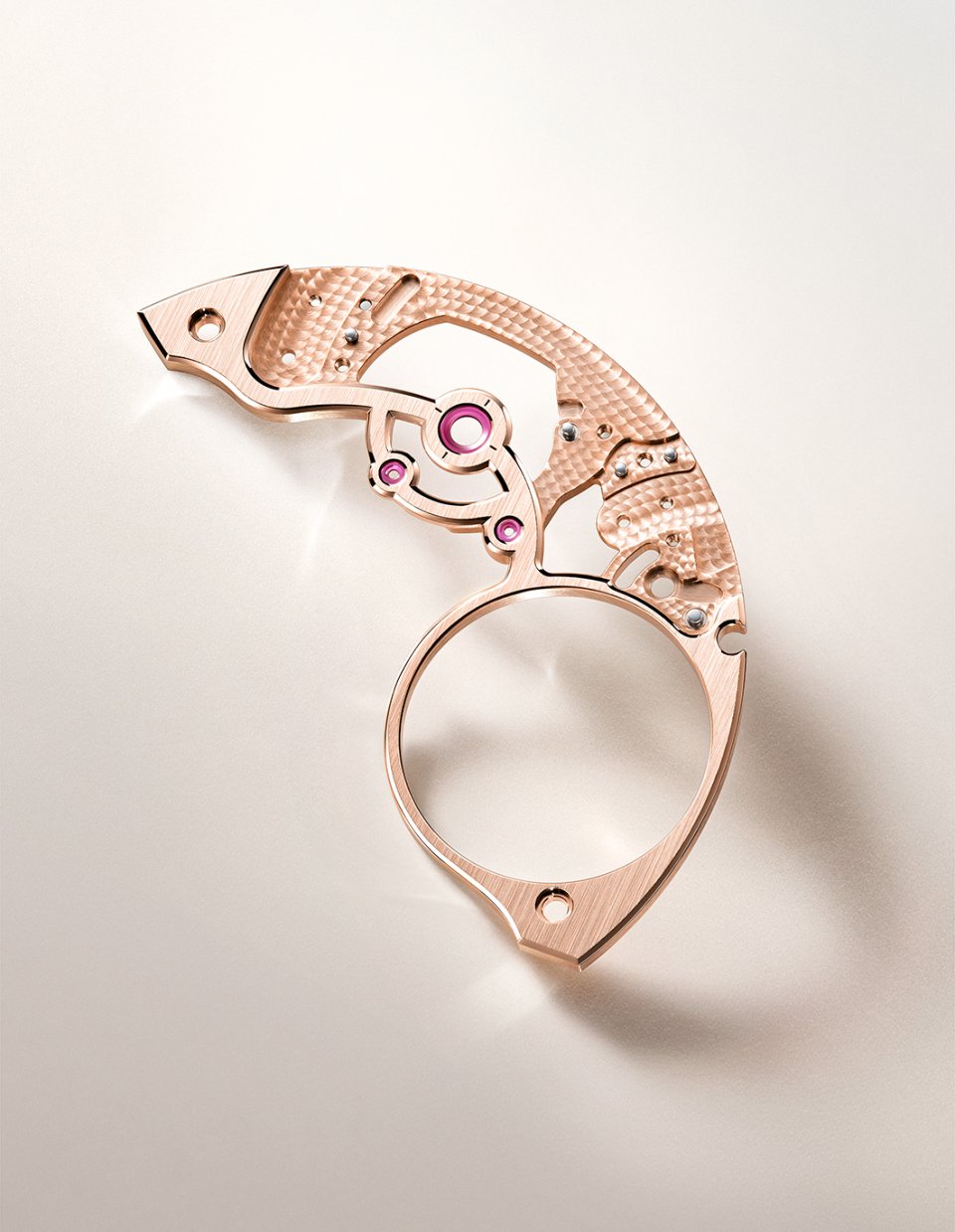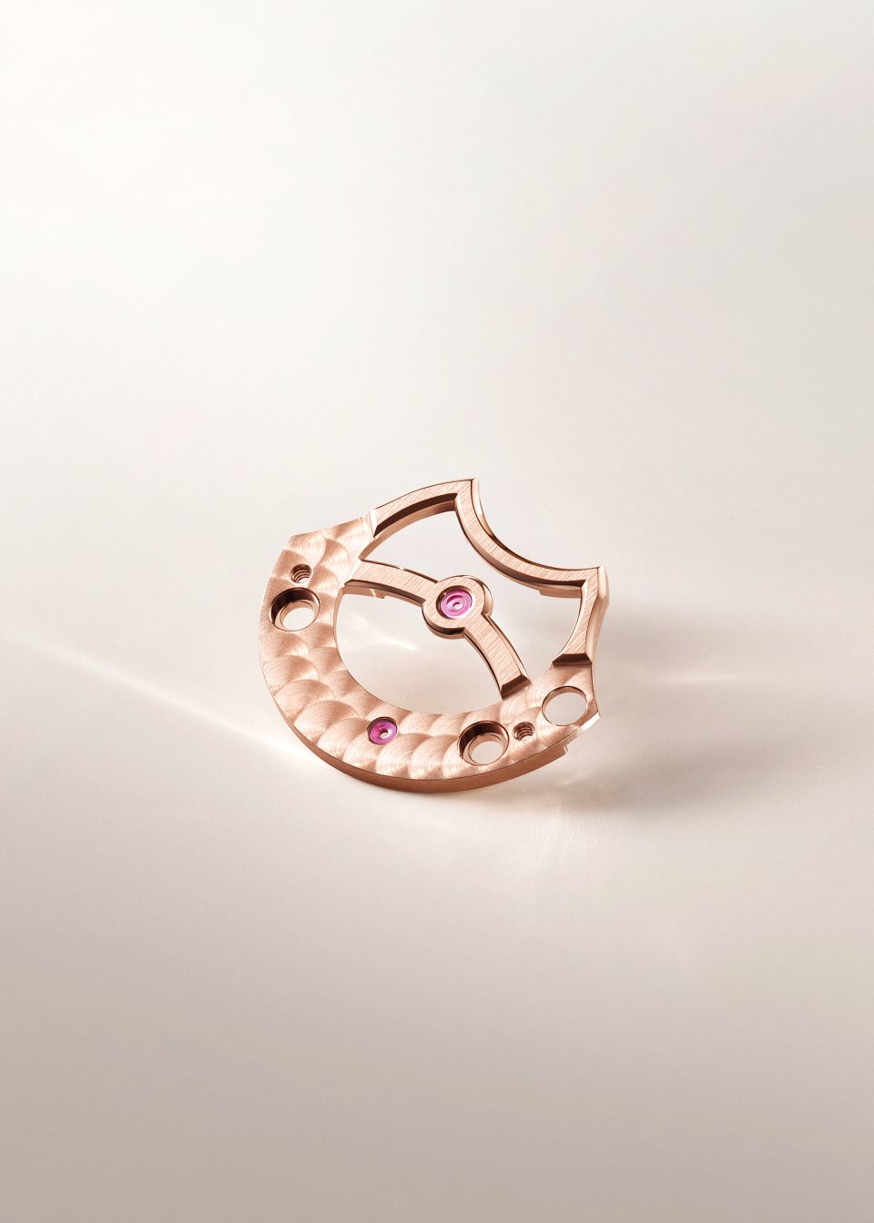 手作業の美しさを強調するため、ブランパンはグランド ダブル ソヌリの地板とブリッジに18Kゴールドを採用しました。この素材は視覚的に美しい効果をもたらすだけでなく、その柔らかさによって、従来のメタルよりもさらに繊細な取り扱いを必要とするため、卓越した技術と忍耐が求められます。それは、間違いが許されず、熟練した職人技が必要だからです。ゴールドはムーブメントの見た目に独特なあたたかみをもたらすだけでなく、ポリッシュ仕上げの表面は、一般的に使用される真ちゅうや洋銀と比べて、より鮮やかに輝きます。