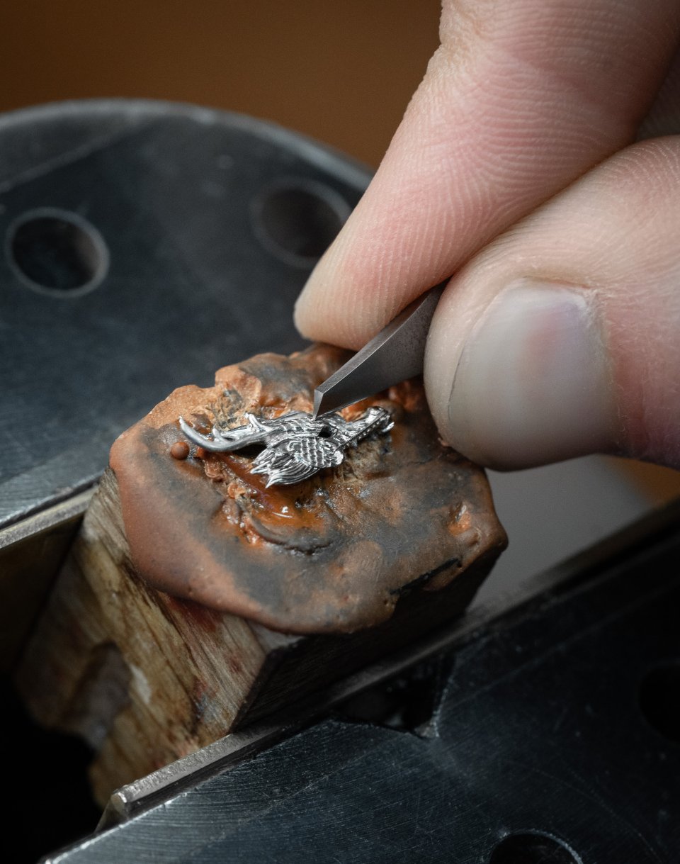 ・手作業による彫刻を施した18Kホワイトゴールドのドラゴンの要素
