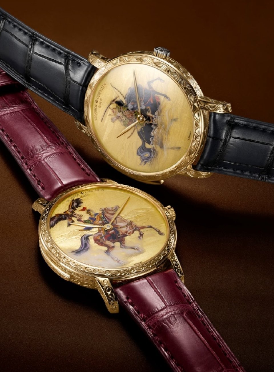 18Kイエローゴールド製ダイヤルには、グラン・フー・エナメルのミニアチュール・ペインティングにより、それぞれの英雄の姿を描いています。偉業を成し遂げた風景を背景、手作業によるエングレービングと、マット仕上げ、ポリッシュ仕上げによって表現しています。手作業でエングレービングを施した41mmのケースは装飾芸術の美しさを強調し、内部には超薄型自社製ミニット・リピータームーブメントのキャリバー1731が収められています。そしてチャイムの音色が、ダイヤルに描かれた英雄が勝ち取った栄光を称えます。