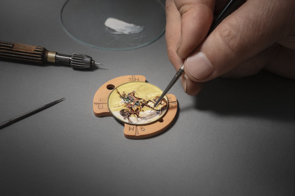 「レ・キャビノティエ・ミニットリピーター ‒ 偉大な英雄たちへ敬意を表して ‒」の4つのユニークピースは、熟練のエナメル職人と彫金師のノウハウが結集しています。