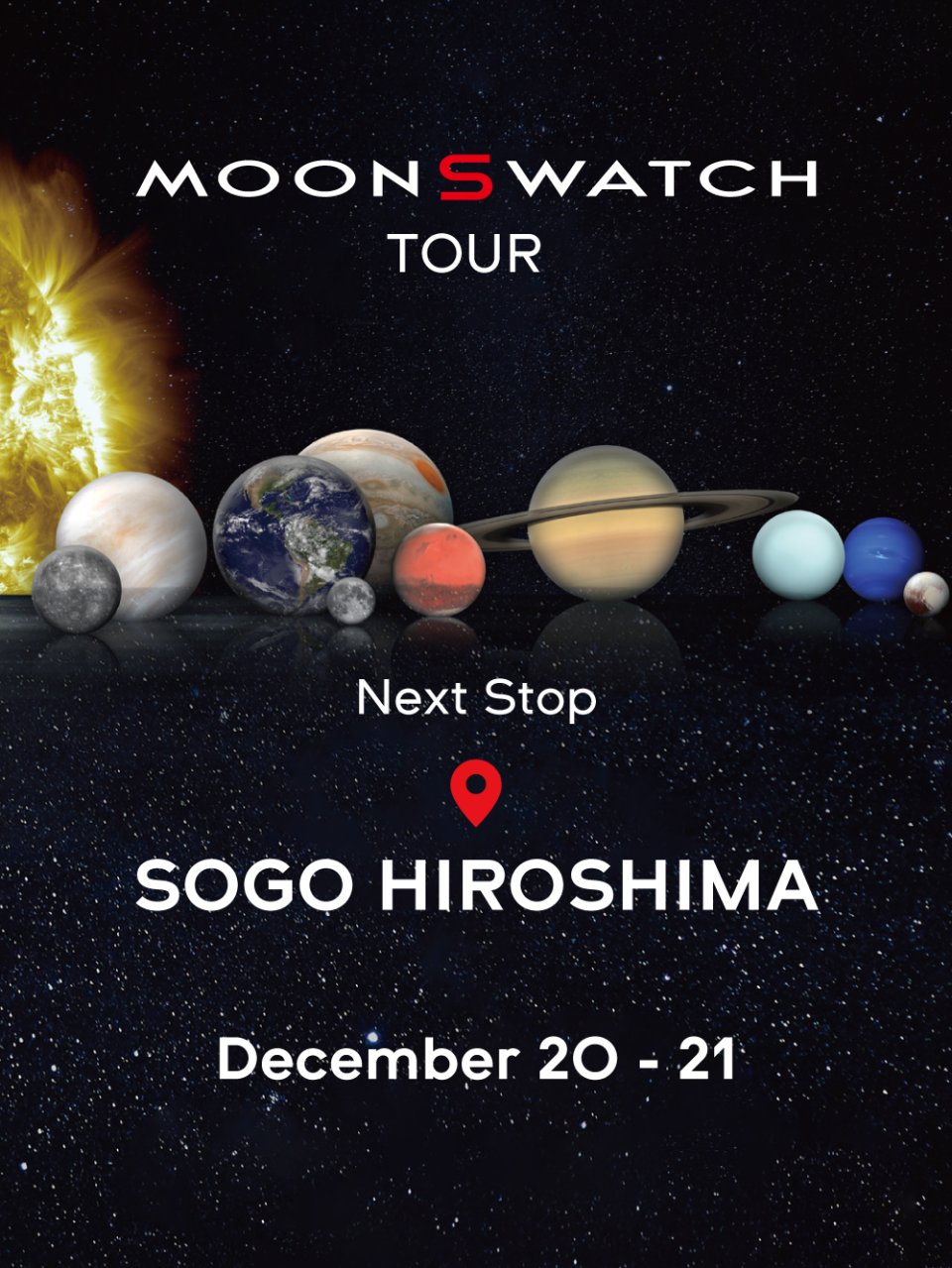 このユニークなツアーが、広島県では初開催となる今回、広島市の中心部に位置するそごう広島店に登場します。そごう広島店は、開業以来、広島を代表する百貨店として地域に根ざし、ファッションやライフスタイル、カルチャーを発信してきました。伝統と新しいカルチャーが息づく広島の中心で、MoonSwatchの世界観を体感できる特別な2日間です。