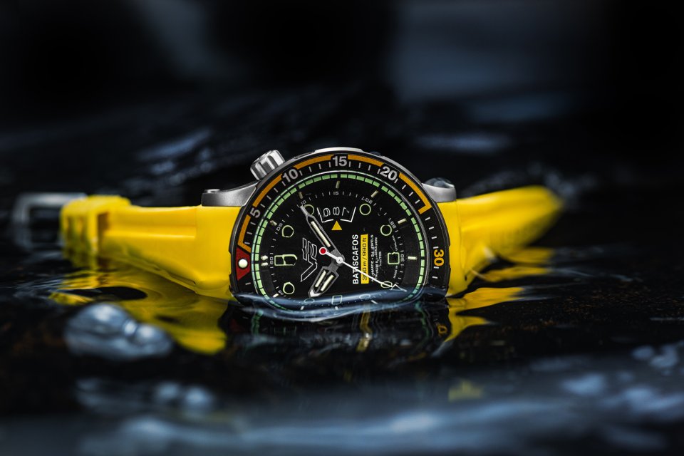 コレクション名「Batiscafos」は、ギリシャ語の「深い(bathys)」と「船(skaphos)」に由来し、1960年にマリアナ海溝の最深部へ到達した「トリエステ号」などの深海探査艇にオマージュを捧げています。