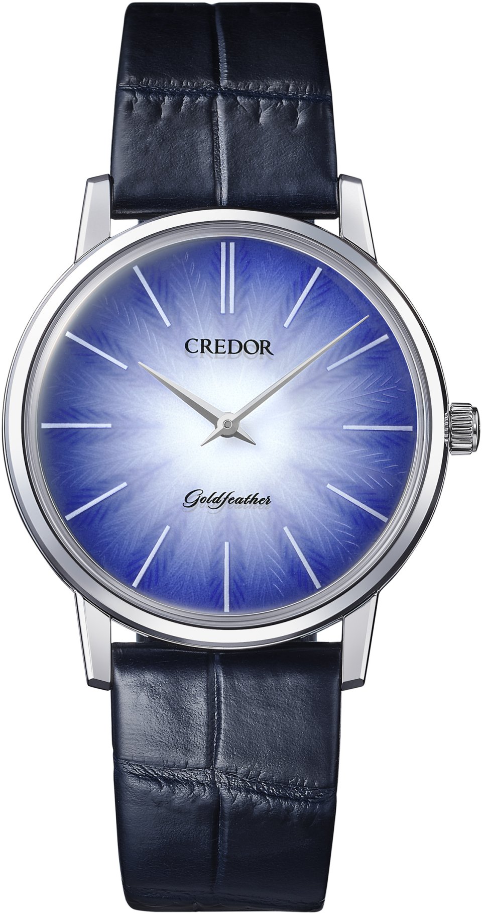 セイコーの薄型メカニカルウオッチの系譜を受け継ぎ、<クレドール>の名のもとに蘇った「ゴールドフェザー」は、現代にふさわしい高級薄型メカニカルウオッチです。羽根のように「薄く」、「軽やかで」、「空気をはらみ」、「艶やかで」、「優美」であることをデザインコンセプトとし、現代のドレスウオッチとしてふさわしいスペックとデザインにアップデートしたコレクションです。