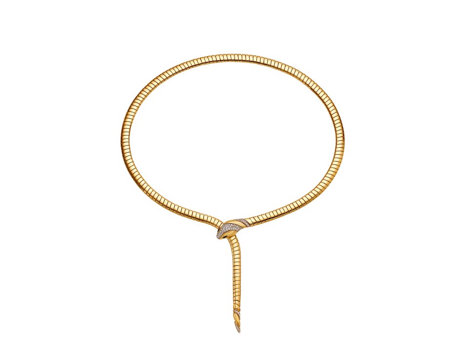 ガブリエル・レオーネは、ブルガリ・ブルガリのウオッチにセルペンティのブローチを合わせました。