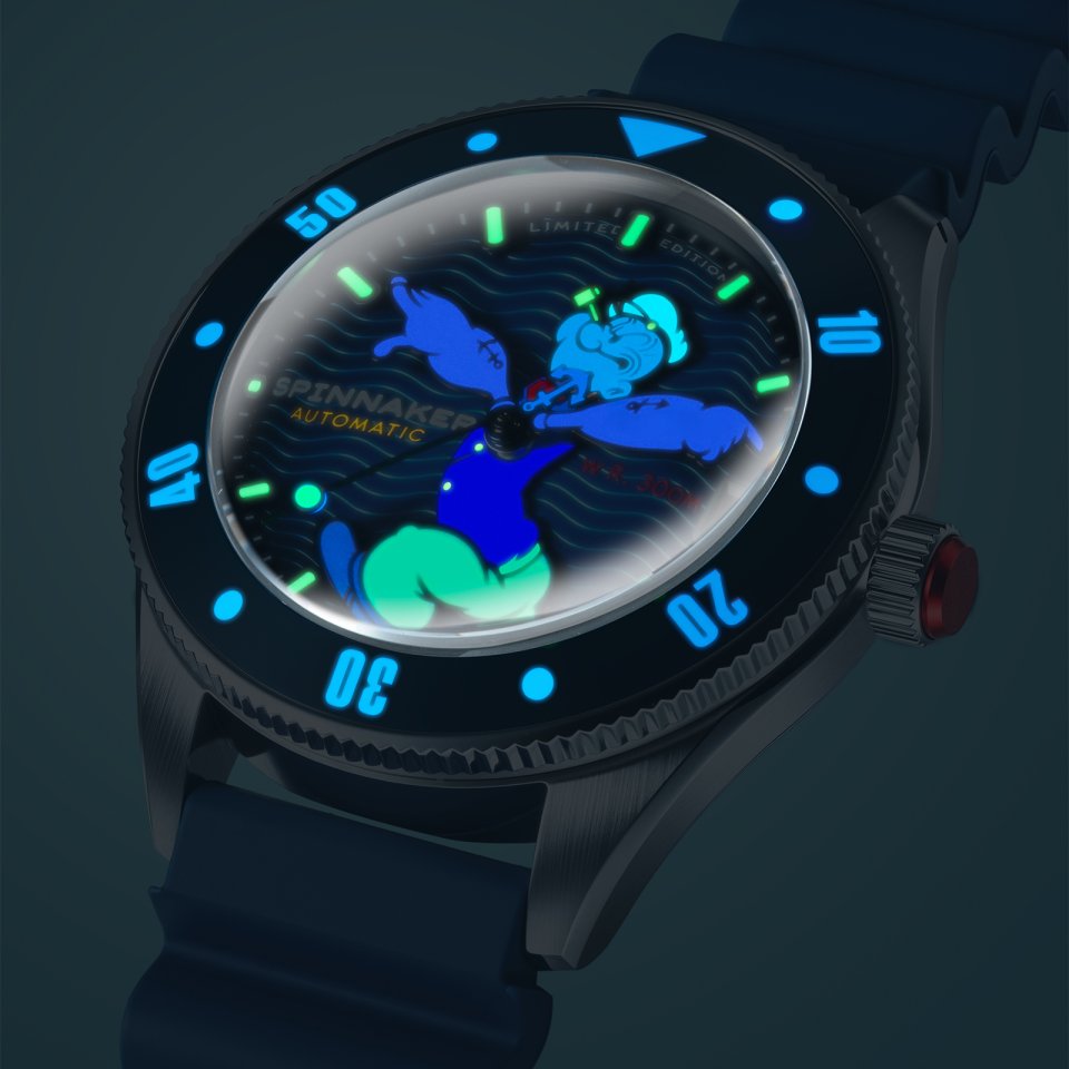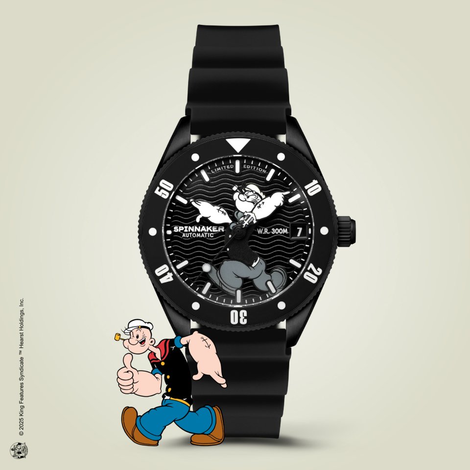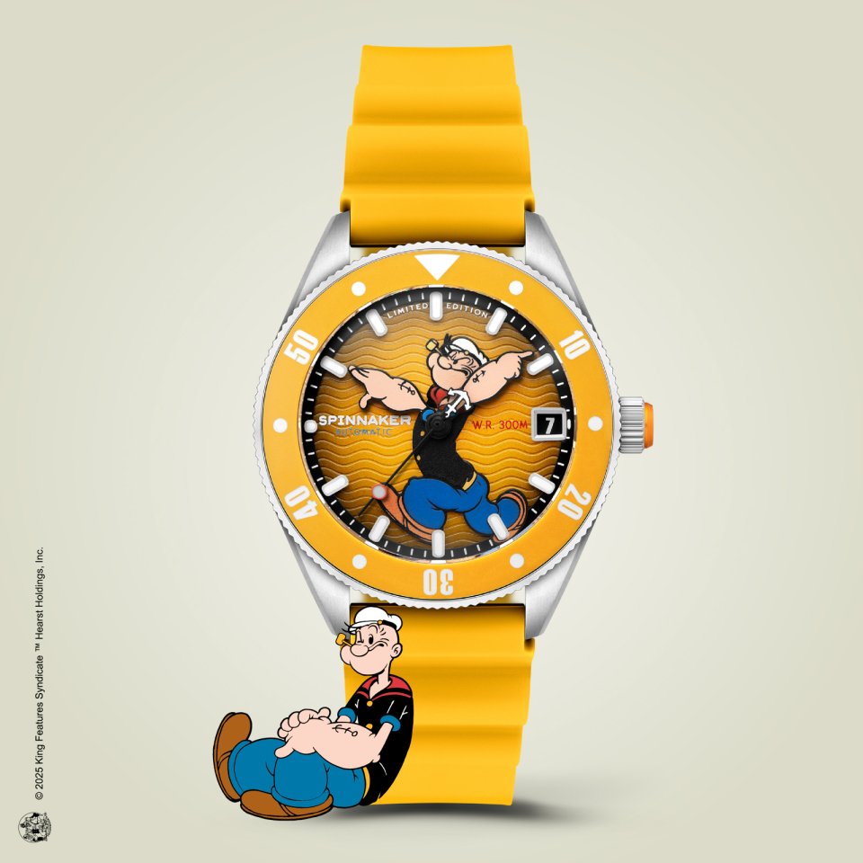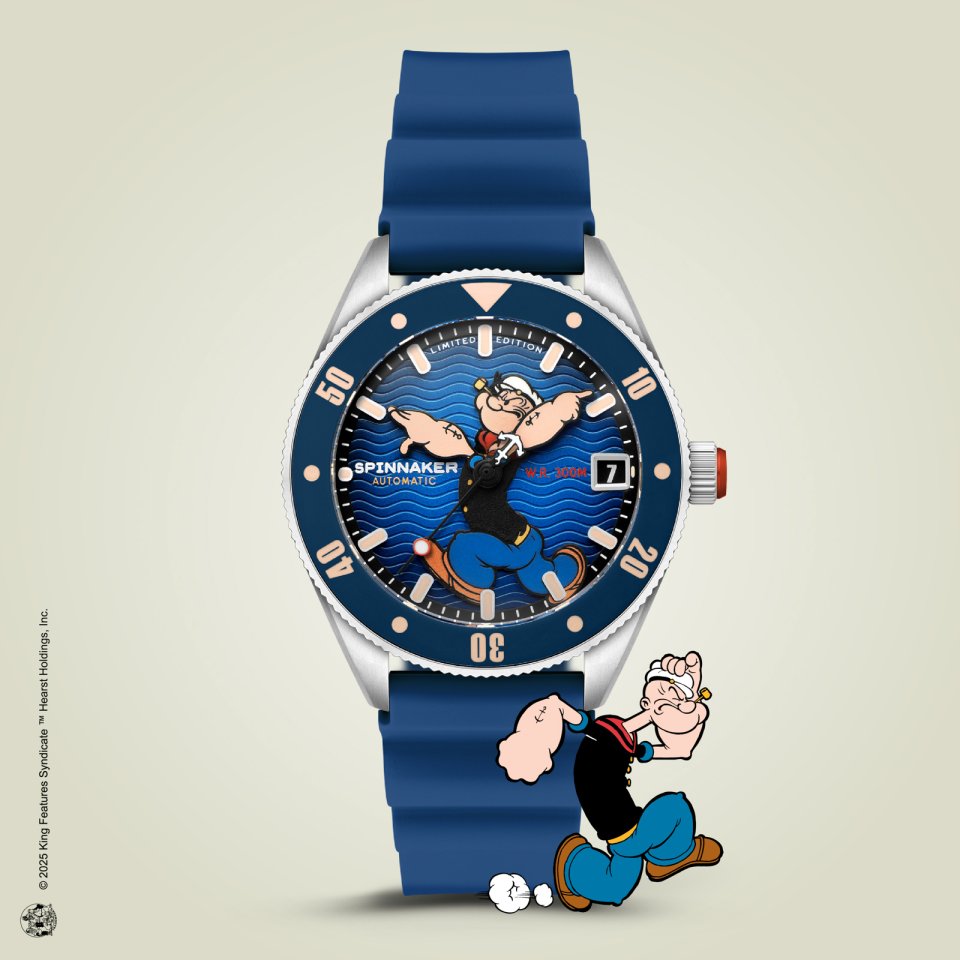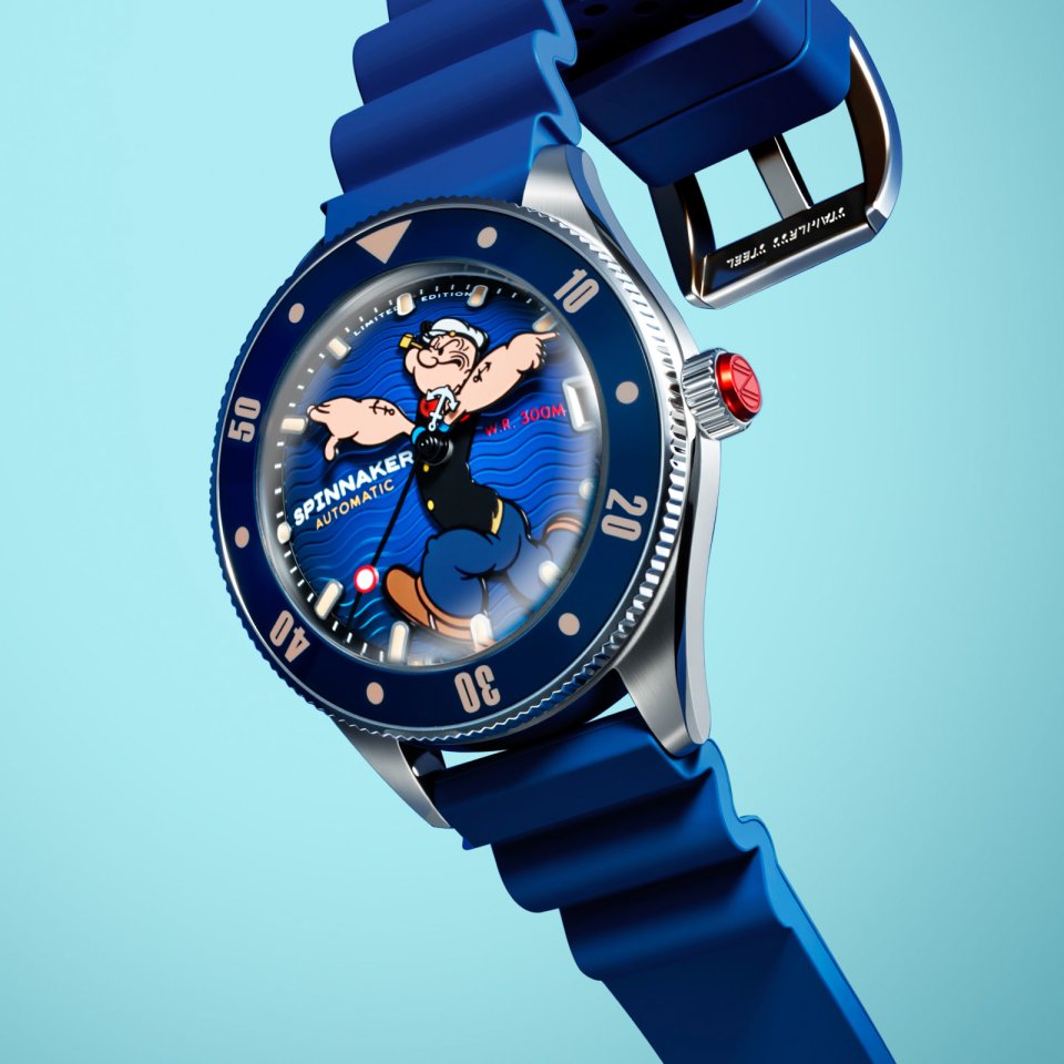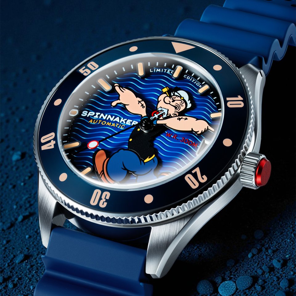 『SPINNAKER(スピニカー)』からポパイとのコラボ第2弾~スーパードームのバブルレンズ時計にポパイの”剛腕”が