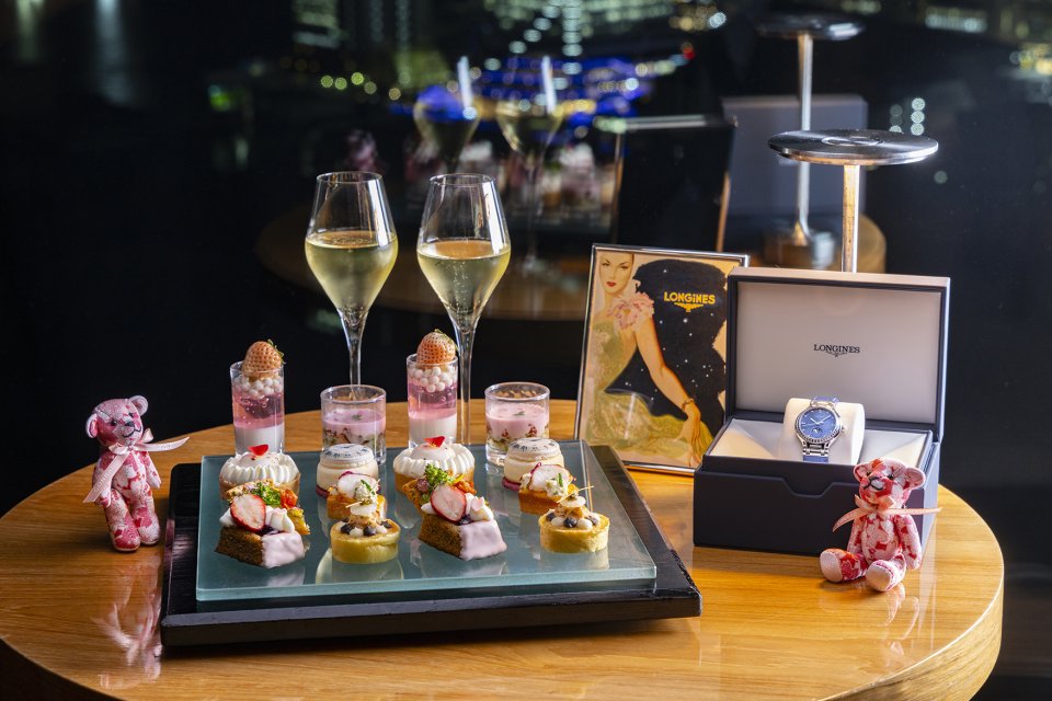 ご来場のお客様には、コラボレーションを記念した特別ギフトをプレゼント。また、乾杯のシャンパーニュといちごプレートが付いた「デラックスアフタヌーンティー」のほか、18時30分からはスパークリングワインを含むフリーフロードリンクとともに堪能できる「桜ストロベリーナイトティー with ロンジン」も展開。『ロンジン』のタイムレスなエレガンスと、コンラッド東京が手がける春スイーツのクリエーションが織りなすアフタヌーンティーで、優美なひとときをお過ごしください。