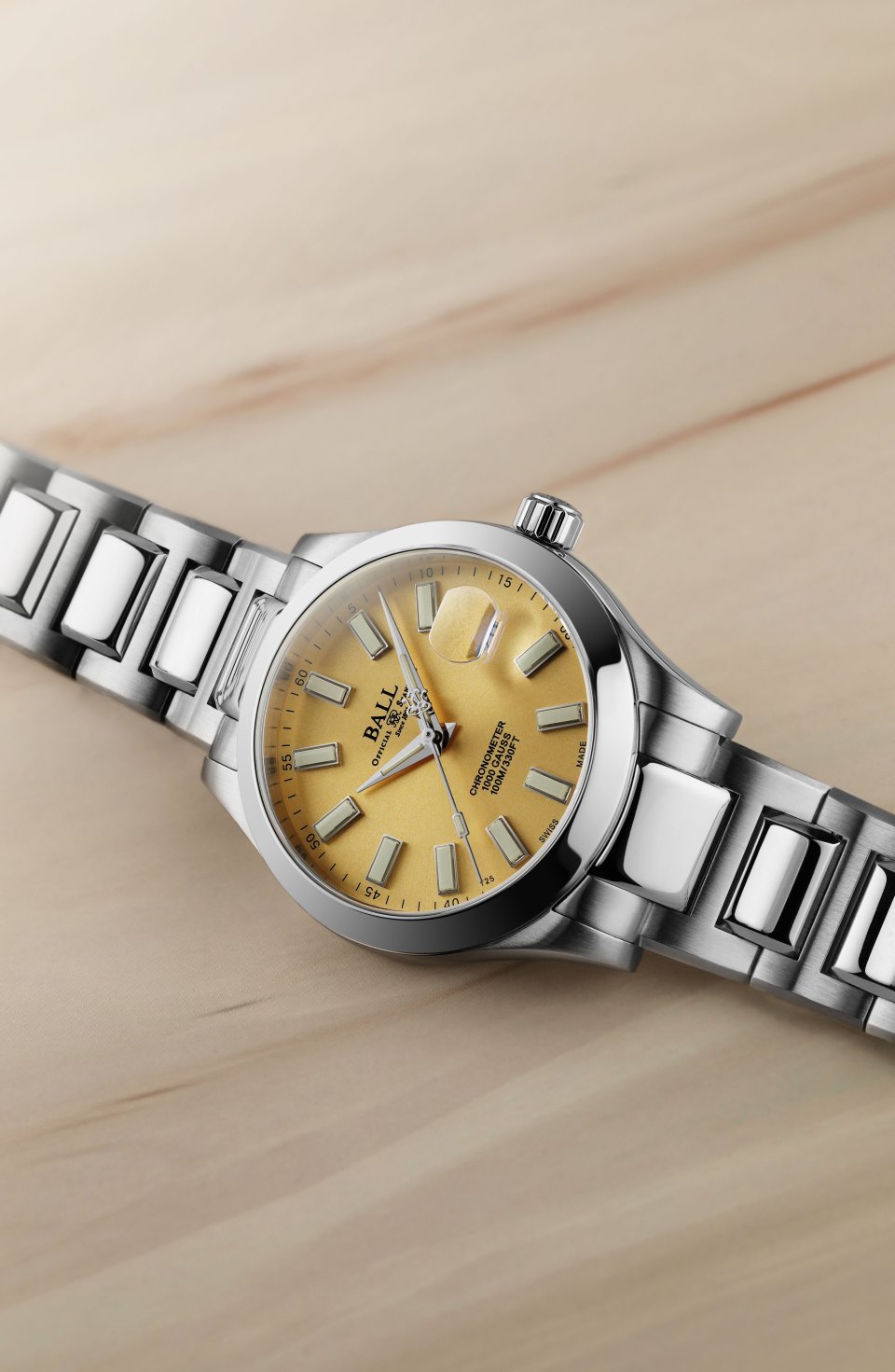 堅牢性と精度を両立し、過酷な使用環境下でも確実に機能する実用時計を追求し続けるボール ウォッチ・ジャパン株式会社は、この度、定評ある「マーベライト クロノメーター 40」に新たなカラーバリエーションとして、ゴールドカラー文字盤を追加いたします。実用時計としての完成度を礎に、落ち着いた華やかさと品格を備えた新文字盤は、日常からビジネスシーンまで幅広く対応する一本として、マーベライト シリーズの表現領域をさらに拡張します。2025年2月初旬より全国のボール ウォッチ正規販売店で発売を開始し、希望小売価格は38万5000円(税込)になります。