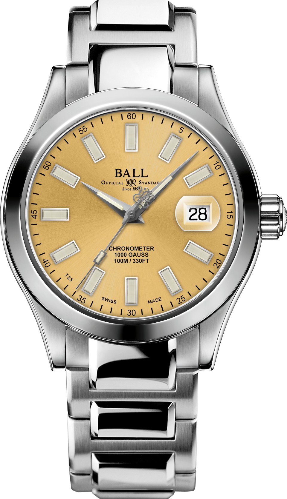 内部にはスイス公式クロノメーター検定機関(C.O.S.C.)認定ムーブメントを搭載。15日間に及ぶ厳格な精度試験をクリアした個体のみが認定を受けるこの制度は、長年にわたり精度を重視してきたボール ウォッチの姿勢を裏付けるものです。鉄道時計製造をルーツに持つ同社にとって、正確な時刻を安定して示し続けることは、過去から現在に至るまで変わることのない価値基準であり、本モデルもその例外ではありません。