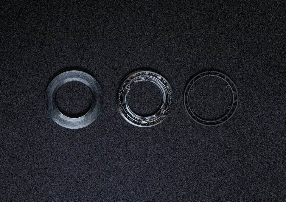 ・レーシングカーのステアリングホイールを想起させる形状のセラマイズドチタン製トゥールビヨンブリッジ