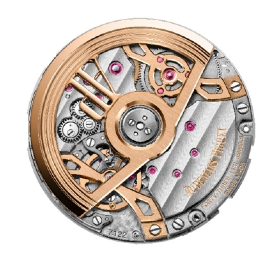 本モデルには、偉大な過去と技術革新へのオマージュとして、マニュファクチュール初の自動巻きジャンピングアワー ムーブメントを搭載しています。ロイヤル オーク “ジャンボ”に搭載されていたキャリバー7121をベースとした新キャリバー7122は、完全な自社開発キャリバーです。インスタントジャンピングアワーと分表示を備え、精度、性能、信頼性を高めています。