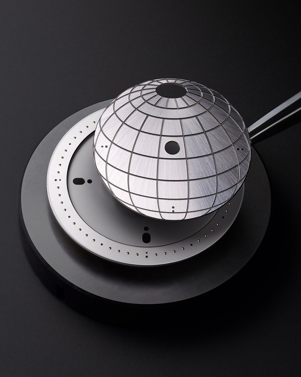 「機能性と構造は密接に結び付いています。針は、ダイアルの幾何学的でクリーンな印象を保つために単一軸上に並べられ、デイ&ナイトインジケータは地球義の上部に控えめに配置。『エスカル』の美的コードを尊重しつつ、その機能を静かに拡張する複雑機構です」と、マチュー・エジは付け加えます。