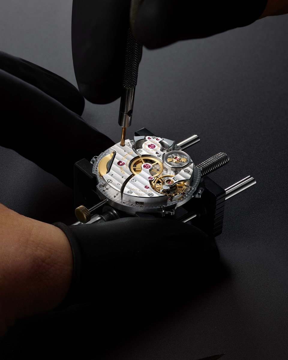 LFT SO 13.01はその構造が卓越しているだけでなく、組み立てと仕上げに4週間以上もの作業を要し、オート オルロジュリーの最高水準を満たしています。仕上げのディテールには、伝統的なコート・ド・ジュネーブ装飾、手作業による研磨が施されたアングラージュ(面取り)、ベースプレート上の繊細なスネイル仕上げなどが含まれ、「ラ・ファブリク・デュ・タン ルイ・ヴィトン」を象徴する職人技が随所に光ります。