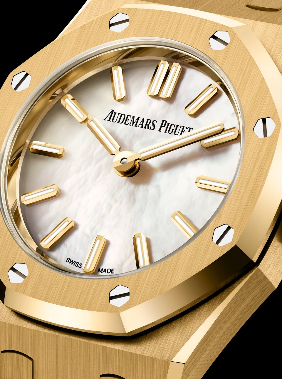 マザーオブパールは虹色の輝きが美しい天然素材で、女性らしさ、輝き、永続性の象徴として多くの分野で長く愛されてきました。オーデマ ピゲは過去にもマザーオブパールを用いてきましたが、今回「ロイヤル オーク」コレクションに再登場したことにより、このタイムレスな素材の魅力をあらためて讃えます。