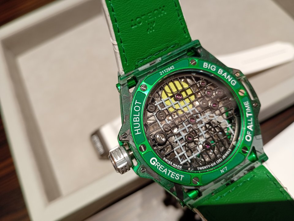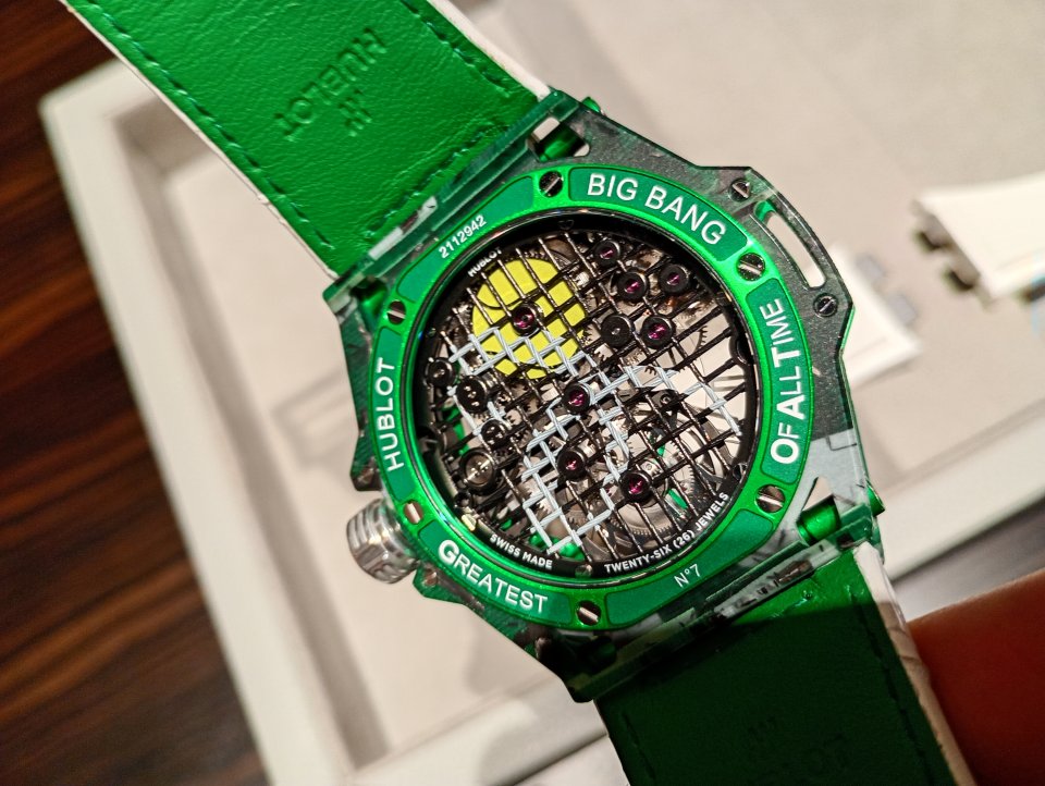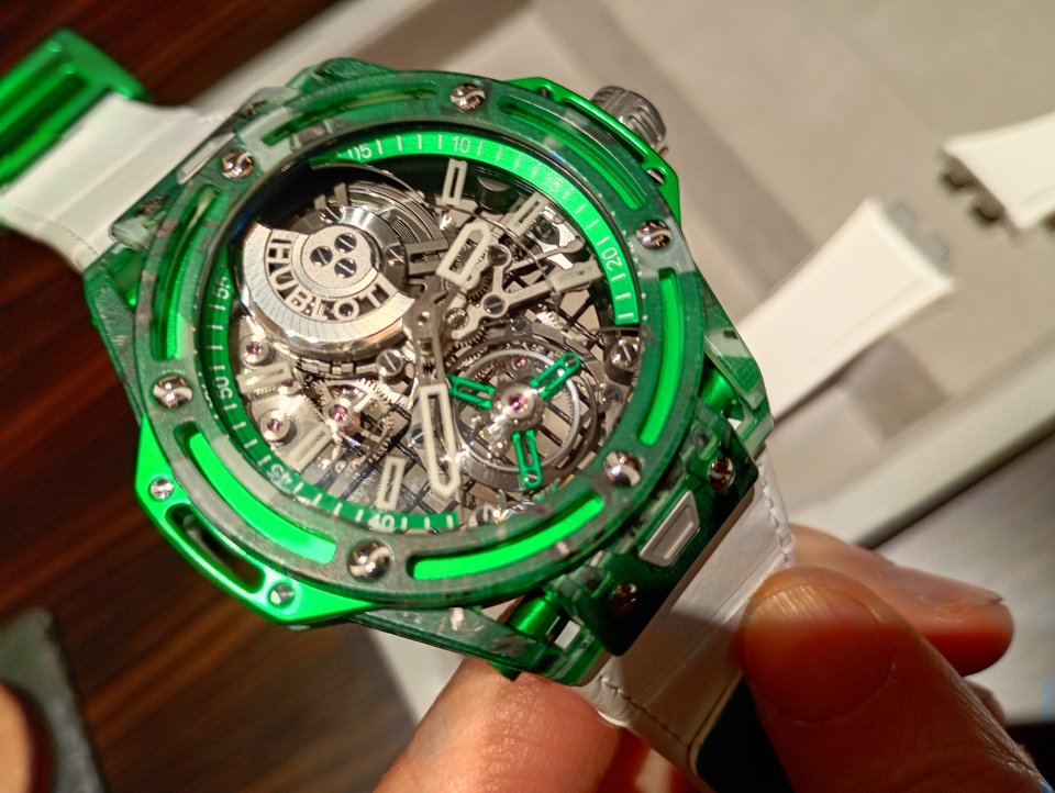 先日お招きいただいたHUBLOT の新作展示会「HUBLOT LVMH WATCH WEEK NOVELTIES」で、実機を拝見できました。